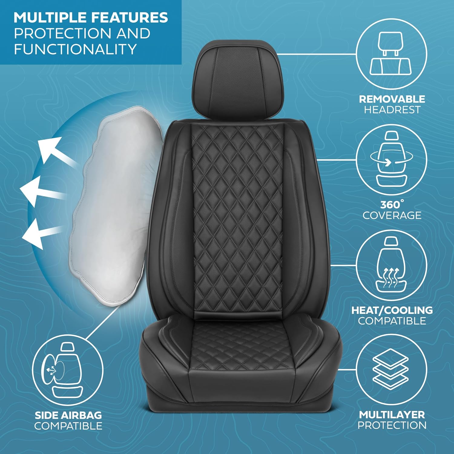 - ULTIMATE PROTECTION: MotorBox faux leather car seat covers offer ultimate protection against spills, stains, dirt, and wear. Designed to shield your seats from daily damage, these covers help maintain the original condition of your car’s interior, ensuring durability and extending the lifespan of your vehicle’s seats. Not just for cars, these are leather seat covers for trucks & SUVs too!