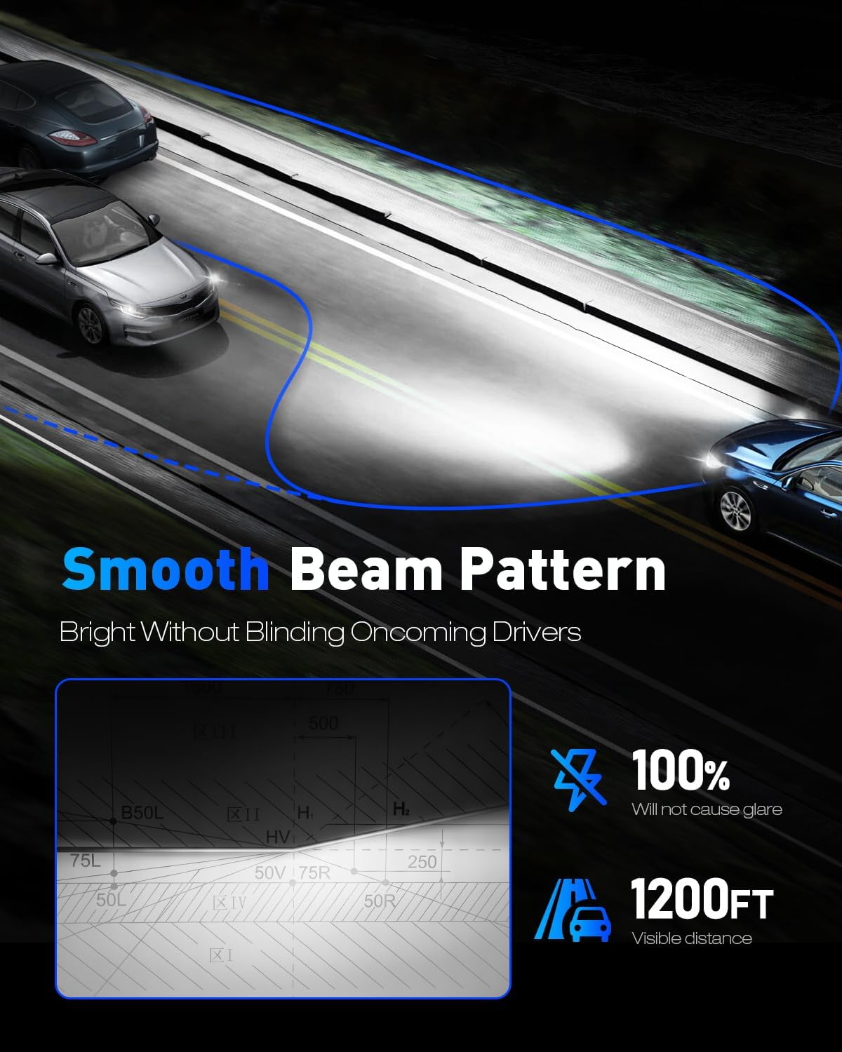 - 【Enhanced Safety】Our upgraded beam technology offers a wider and farther illumination range without causing glare for oncoming drivers, ensuring safer journeys
