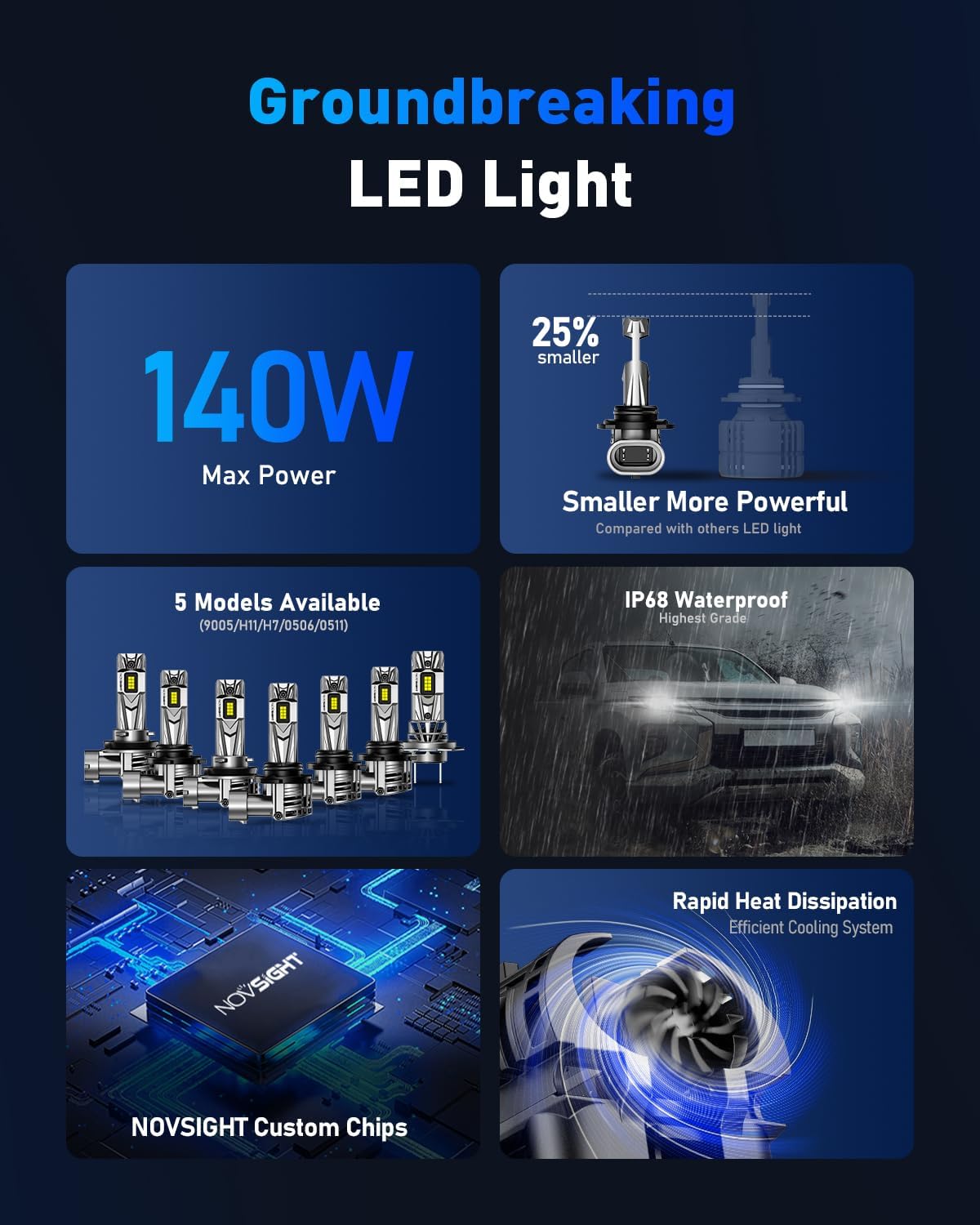 NOVSIGHT 9005 9006 Fog Light Bulbs - 80000LM 6500K Cool White, 1:1 Design Easy Installation, Non-Polarity Plug-and-Play, Pack of 4