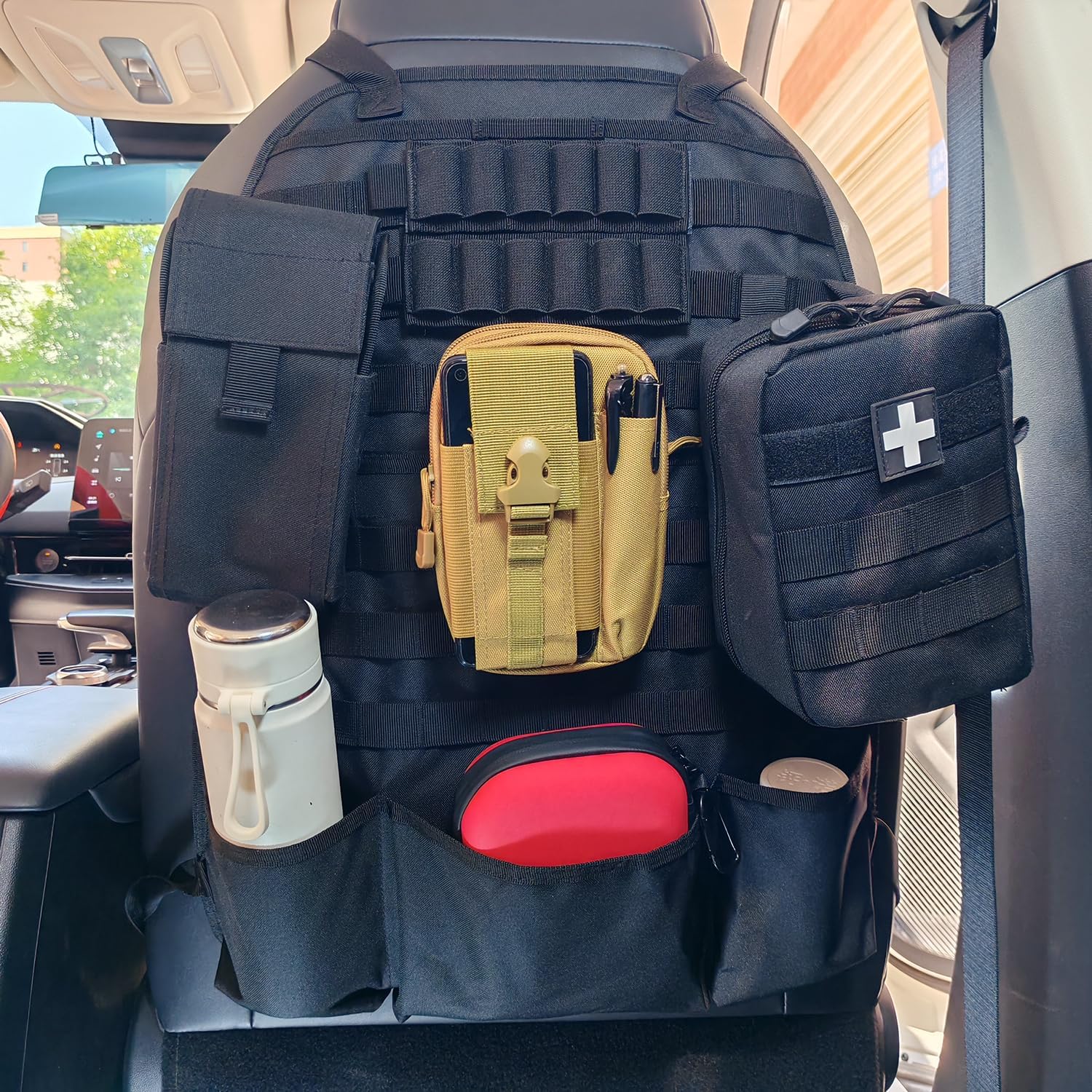 Car Seat Back Organizer Tactical MOLLE Panel Back Seat Storage Bag Universal Car Seat Cover Protector (Black)