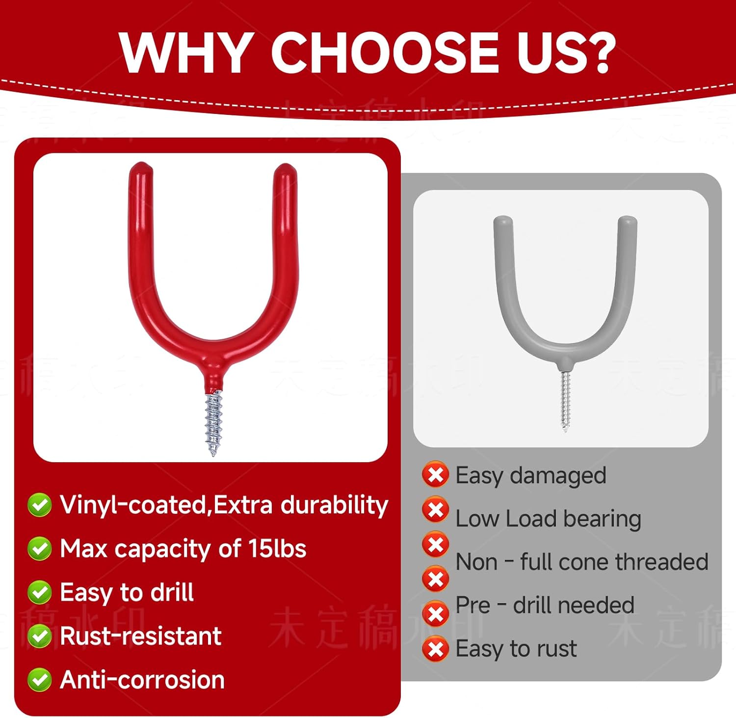 12 Pack Garage Storage System Steel U Hooks with Anti-Slip Coating Home Improvement and Organization Screw in Hooks Easy Wall Mounting Heavy Duty Bike and Ladder (Red, 12 Pack)