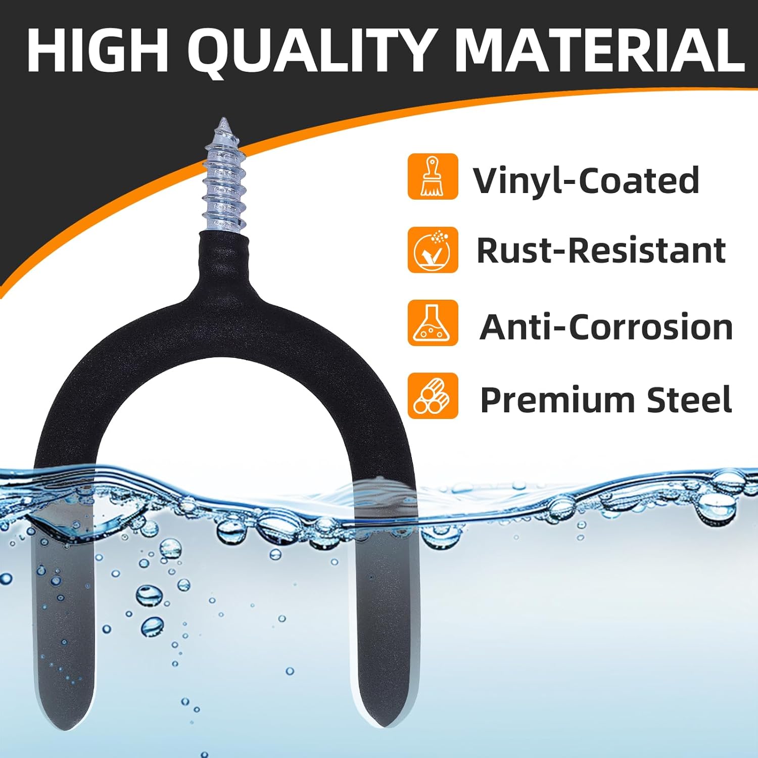 6 Pack Garage Storage System Steel U Hooks with Anti-Slip Coating Home Improvement and Organization Screw in Hooks Easy Wall Mounting Heavy Duty Bike and Ladder (Black, 6 Pack)