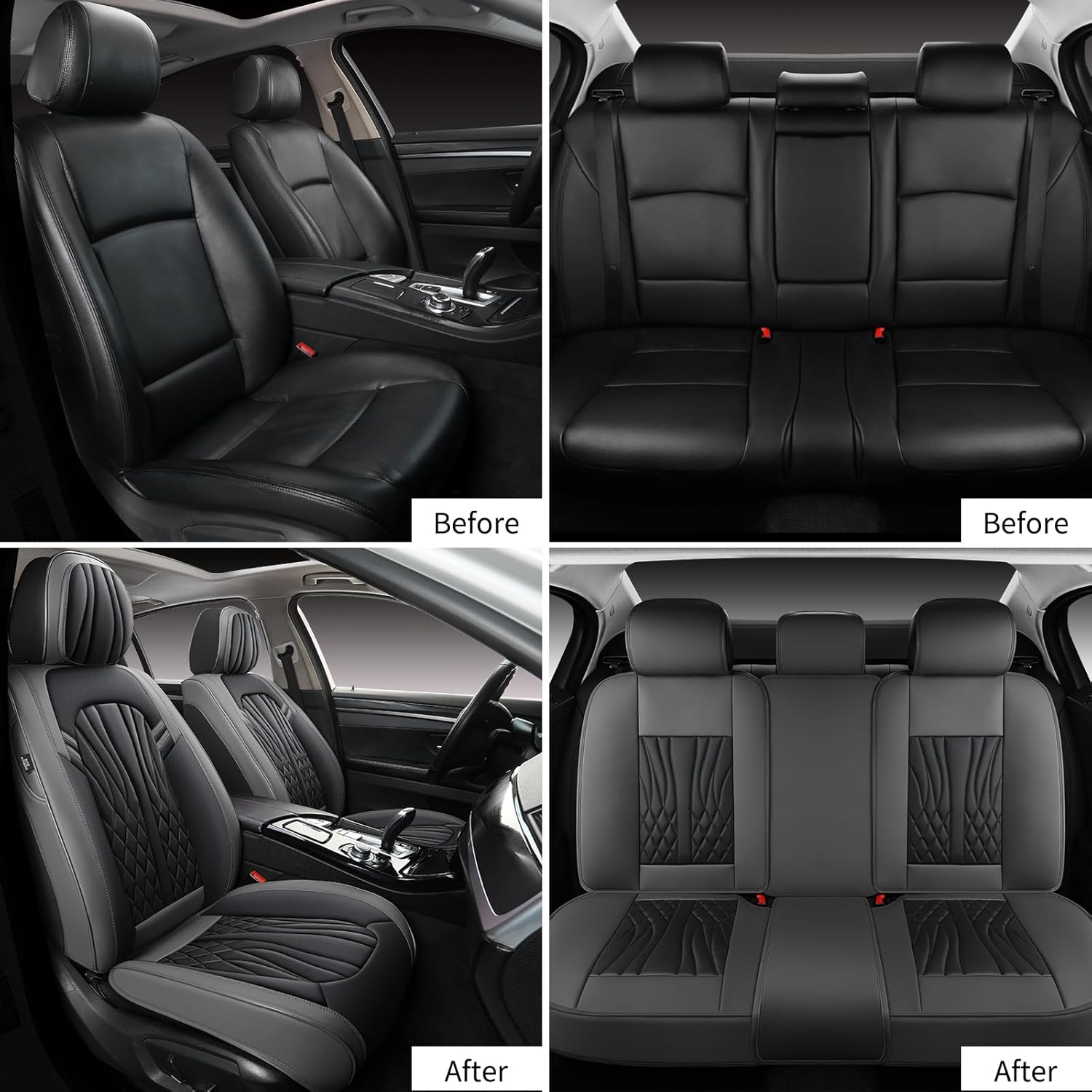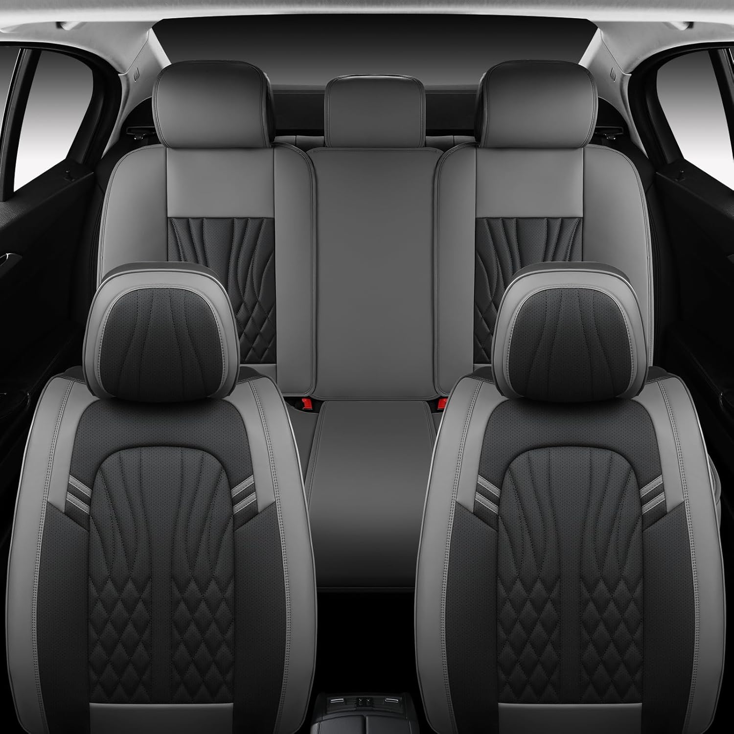 Leather Car Seat Covers,Car Seat Protector Waterproof,Seat Covers Full Set, Car Seat Protectors 5 Seats,Automotive Seat Covers Fit Most Cars Grey&Black