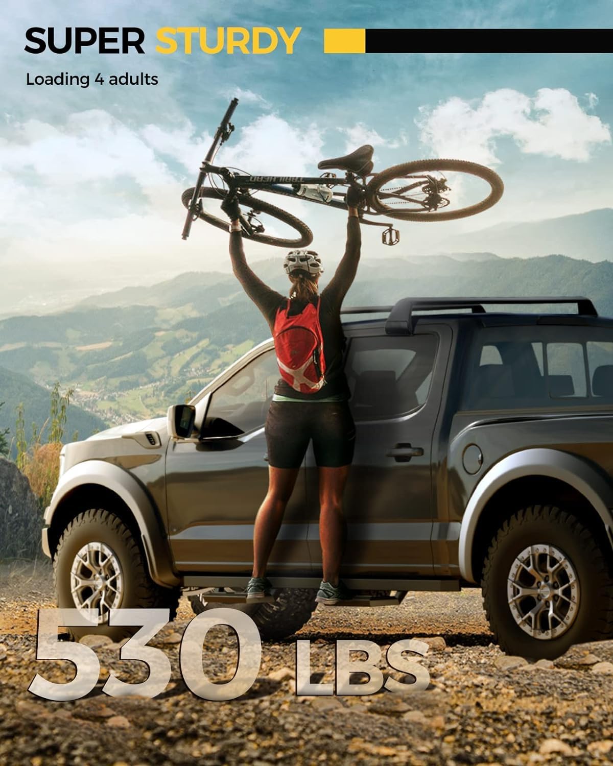 - 【HEAVY-DUTY SUPPORT】Made from premium steel, these running boards can handle up to 500 lbs. of weight, offering extra protection for your truck’s sides and safe, stable entry for your family.