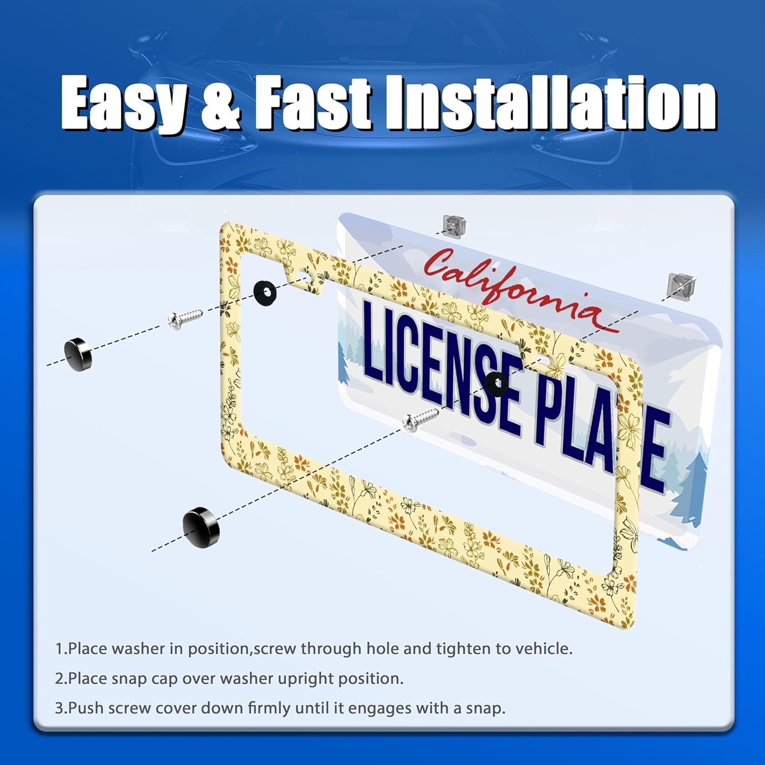 - Our license plate holder is perfect for most license plates, whether you park your car in the yard or travel outdoors, your license plate will stand out
