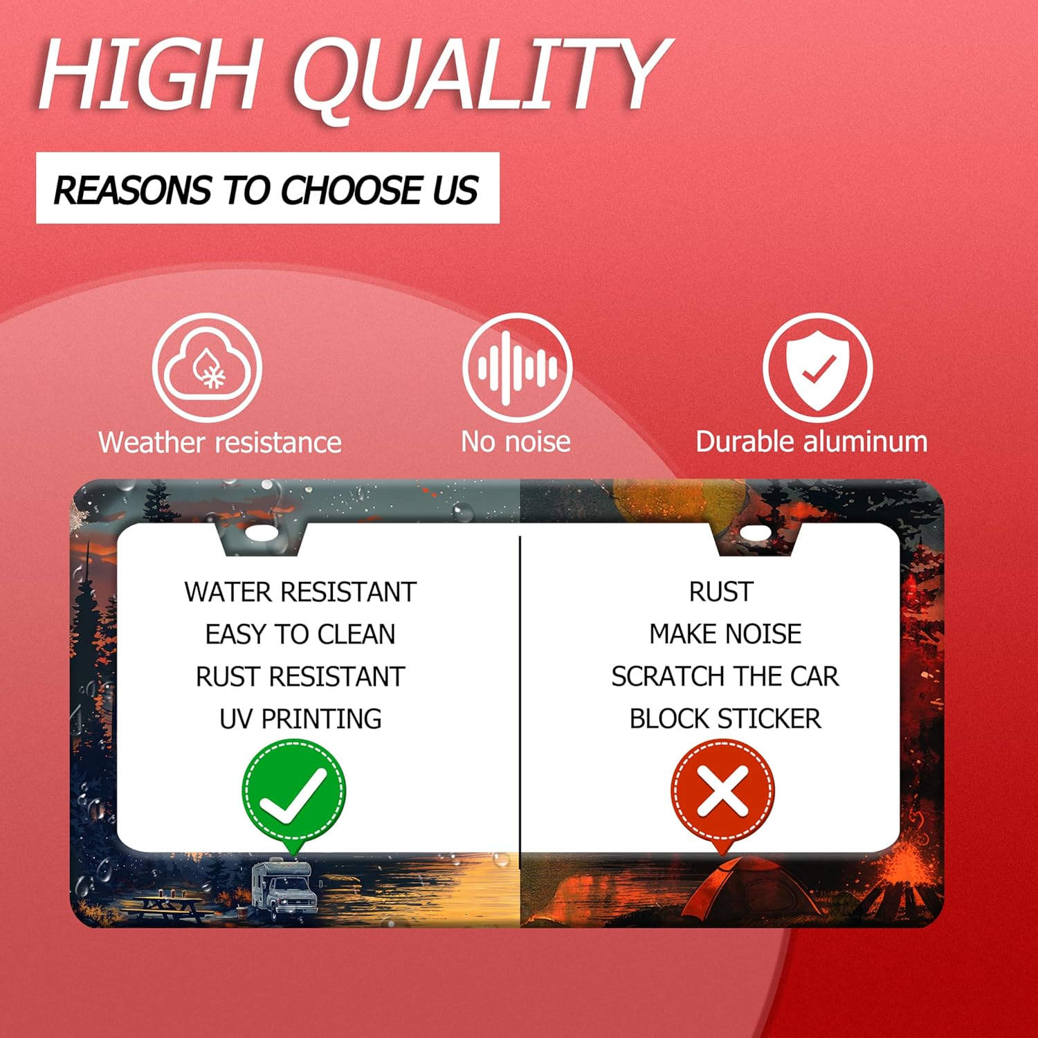 Camping License Plate Frame Personalized Forest License Plate Frames Funny Auto Accessories Bracket Stainless Steel License Plate Holder 6x12 Inch