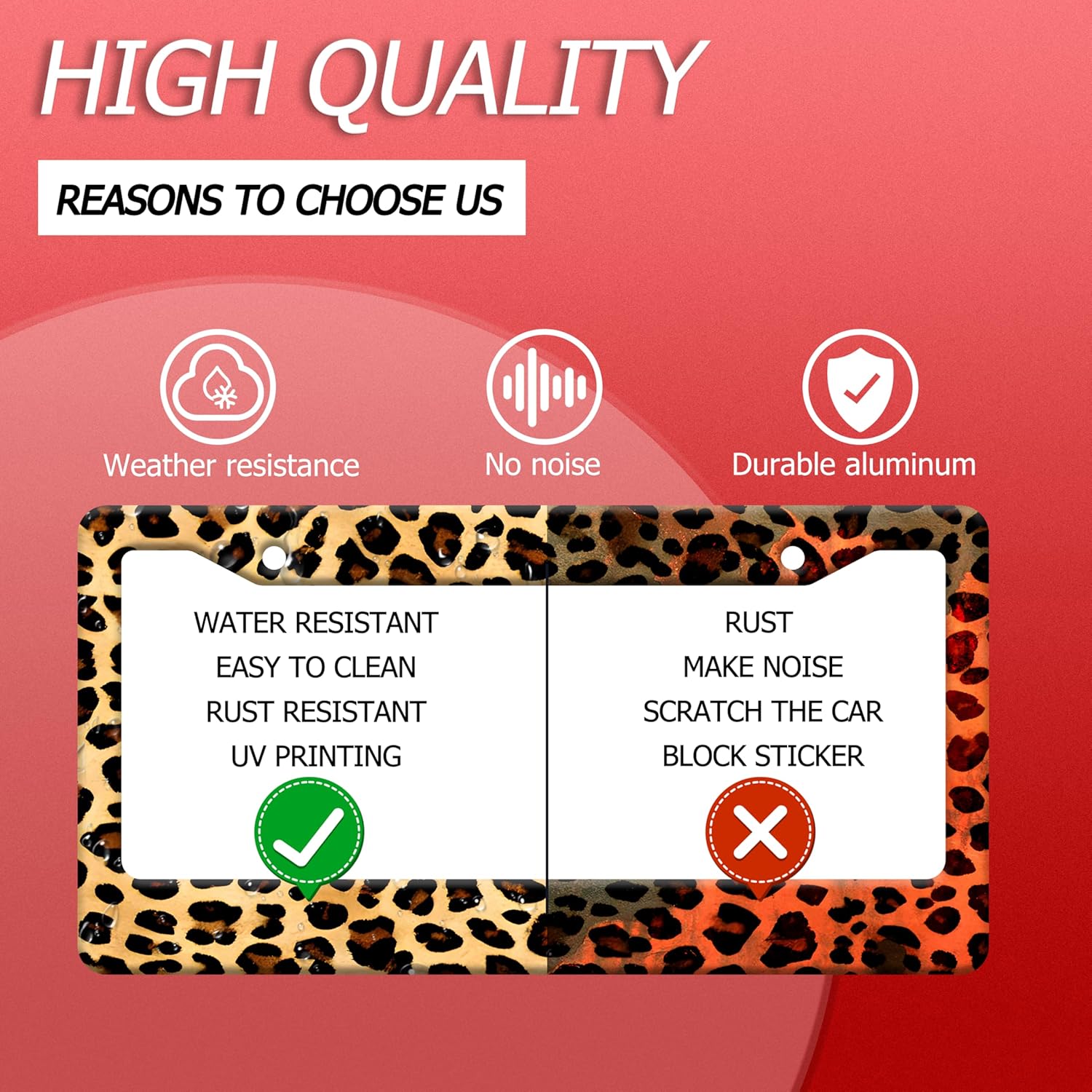 Cheetah Brown Leopard License Plate Frame Animals Print License Plate Frames Funny Auto Accessories Stainless Steel License Plate Holder 6x12 Inch