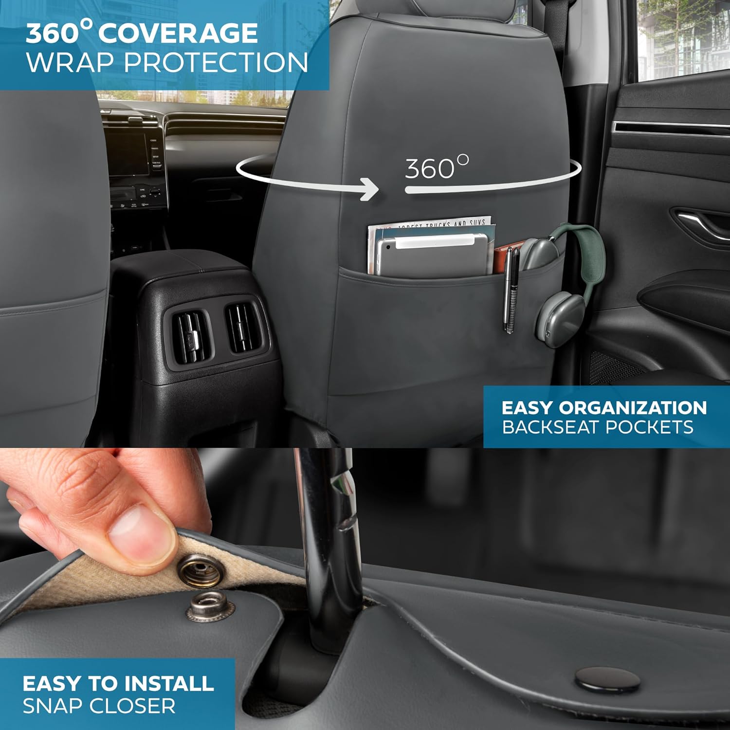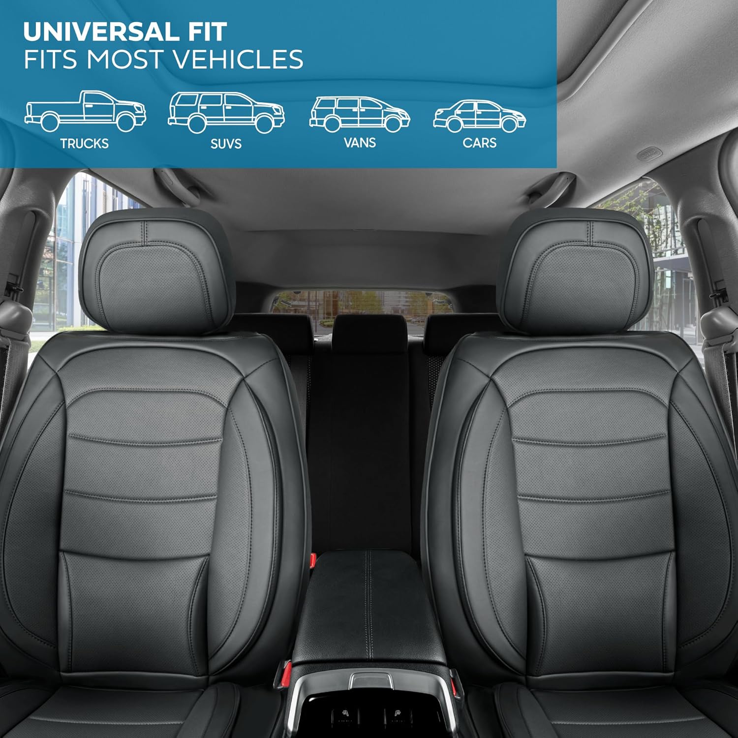 - ULTIMATE PROTECTION: MotorBox faux leather car seat covers offer ultimate protection against spills, stains, dirt, and wear. Designed to shield your seats from daily damage, these covers help maintain the original condition of your car’s interior, ensuring durability and extending the lifespan of your vehicle’s seats. Not just for cars, these are leather seat covers for trucks & SUVs too!