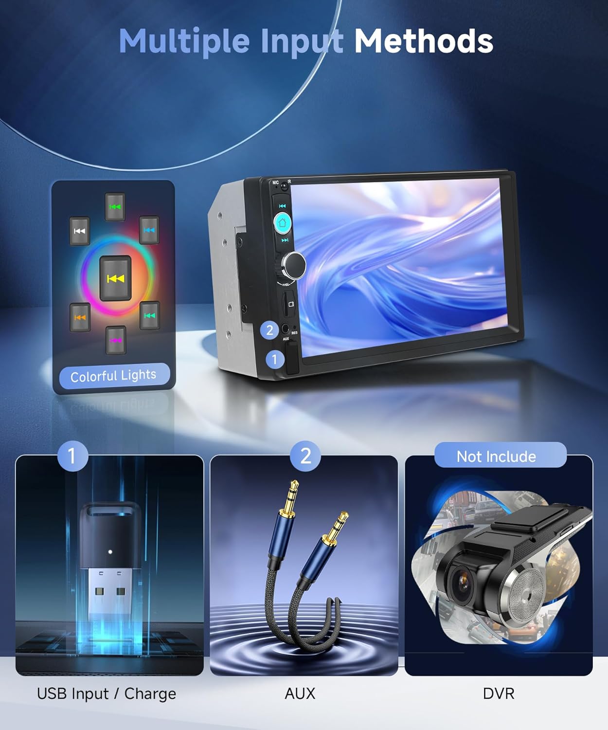 - 【7 Inch Touchscreen Car Radio 2 Din】The installation dimensions of the car radio are 180*103*80mm. Car radio with 7 inch HD touch screen. Bluetooth car radio supports USB/SD/AUX In/TF. Supports audio/video in and out.Car Radio with Microphone. Supports Colorful backlit buttons,multiple sound adjustments (SEL),electronic hardware sound effects (EQ) processing. Car radio with square frame for a better fit in your car's center console.