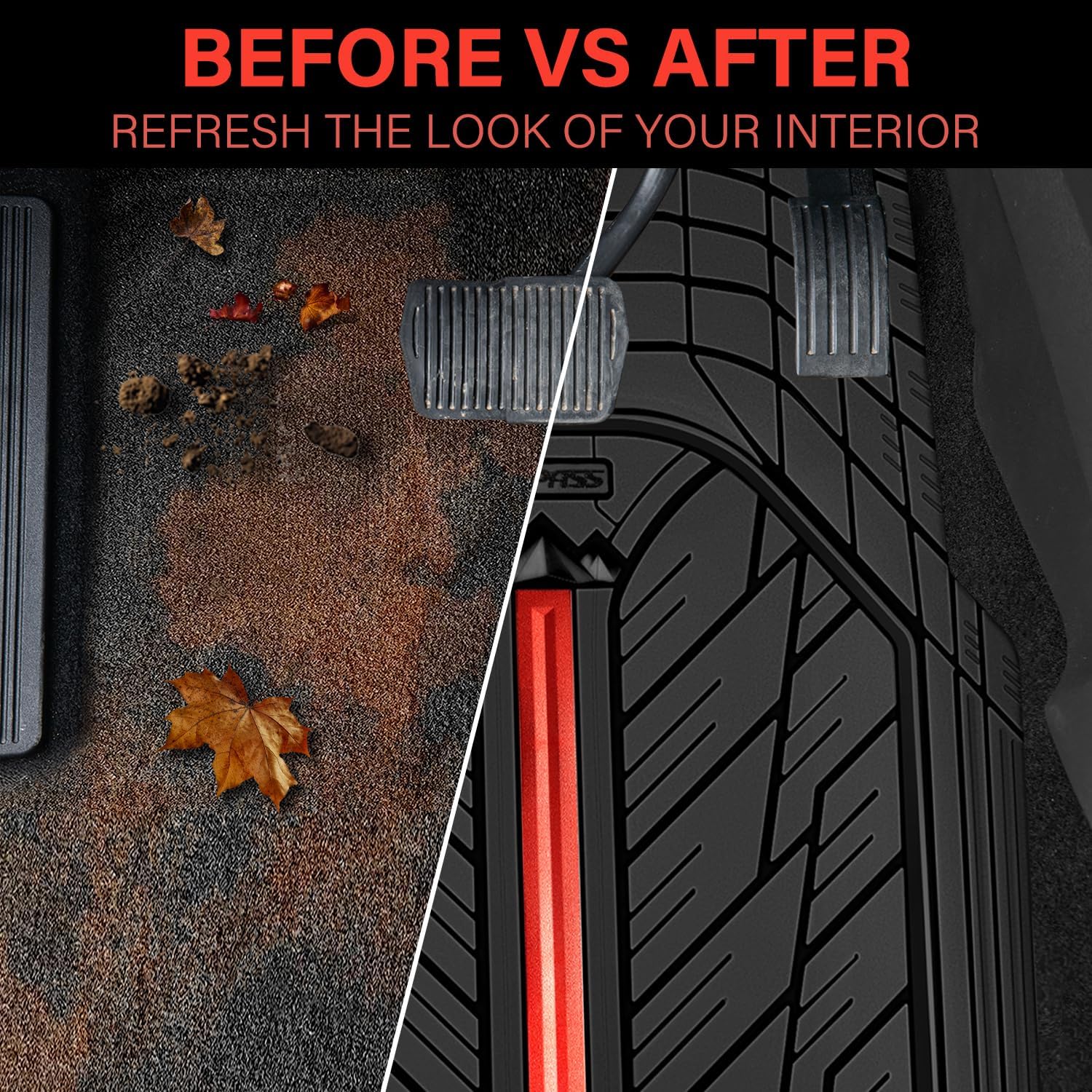 CAR PASS Metal Medium Rubber Floor Mats for Car Heavy Duty Car Mats All Weather, Universal Trim to Fit for Truck SUV Vehicle Automotive Floor Mats, Waterproof Car Mats 4 Piece Black and Red