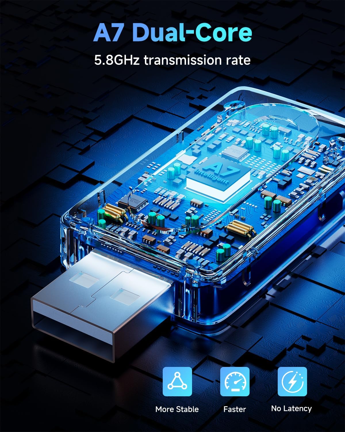 - 【Ultra-Fast & Seamless Wireless CarPlay】Experience lightning-fast connectivity with advanced 5.8GHz WiFi and Bluetooth 5.3, supported by multi-threaded control technology for ultra-responsive performance. The adapter connects in just 5-10 seconds on first use and automatically reconnects in 3-5 seconds—no manual setup needed. With 4x faster transmission speeds than standard adapters, it delivers stabilized high-speed data transfer, ensuring crystal-clear audio and smooth, lag-free video for a seamless CarPlay experience every drive.
