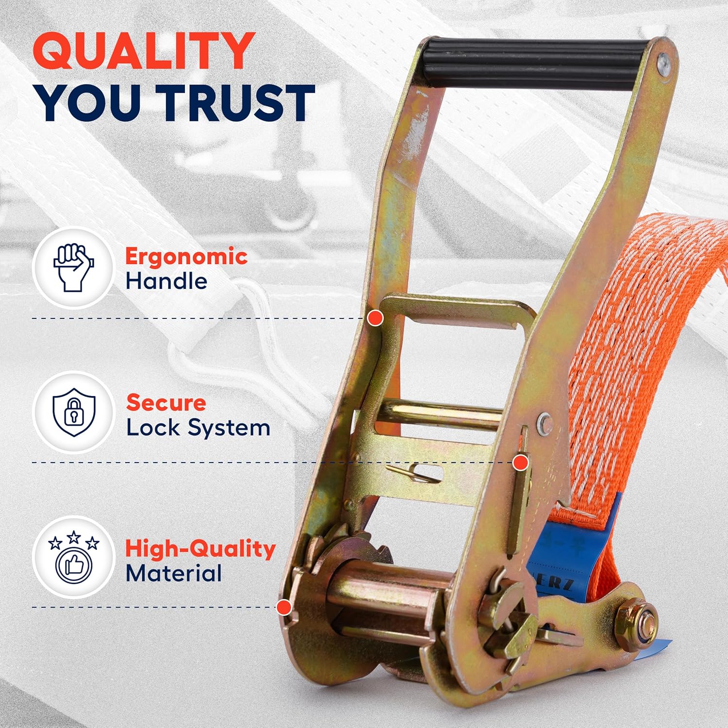 Heavy Duty Ratchet Straps 2 inch x 27 ft - 6600 Lb Breaking Strength Tie Downs Ratchet Straps with Double Wire J Hooks for Truck and Trailer