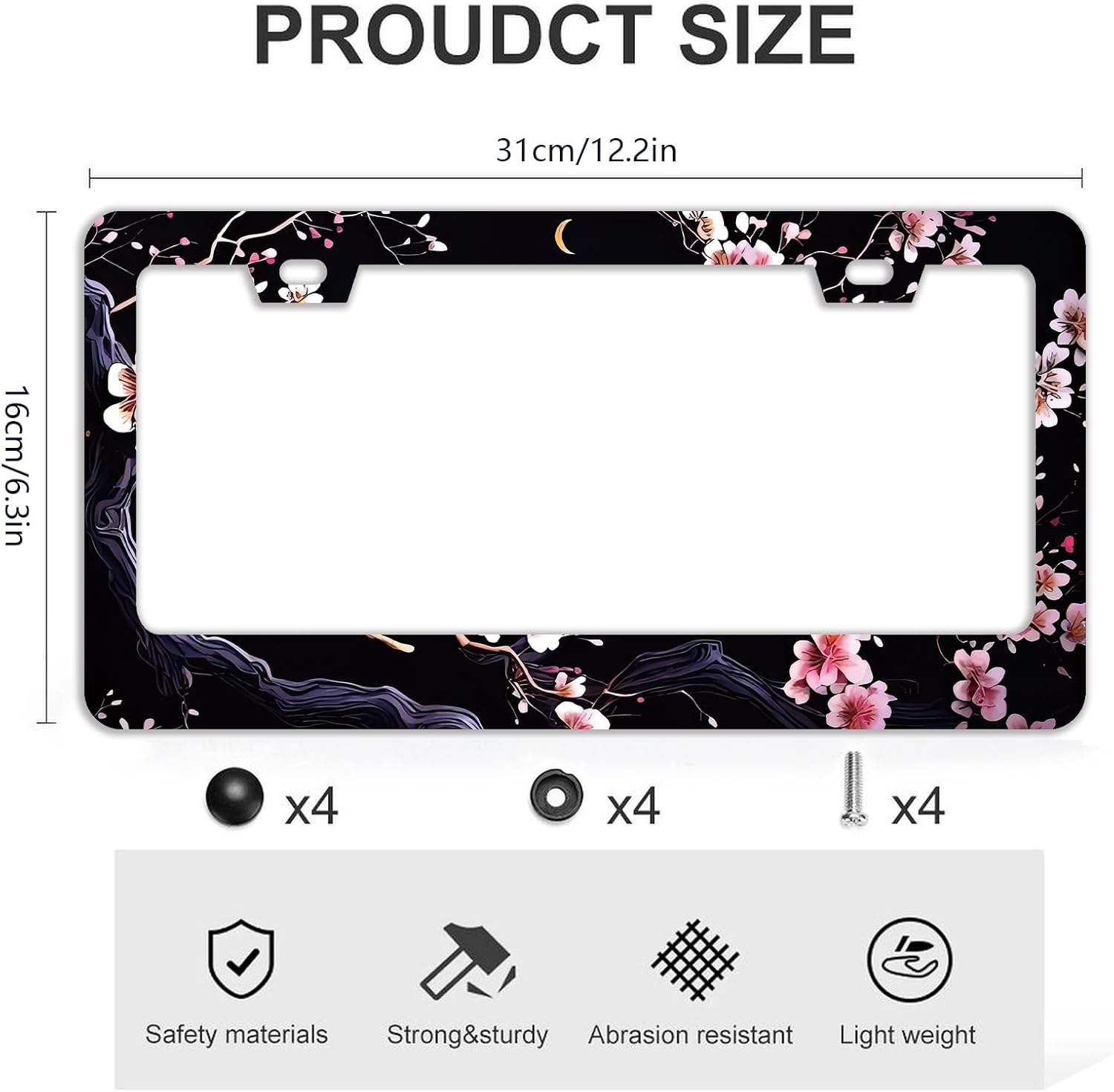 - 【Standard Frame Size】:License plate frame suitable for Us and Canadian standard vehicles size 6.3" x 12.2"(16cm x 31 cm) license plate.fits most trucks, cars,garages.