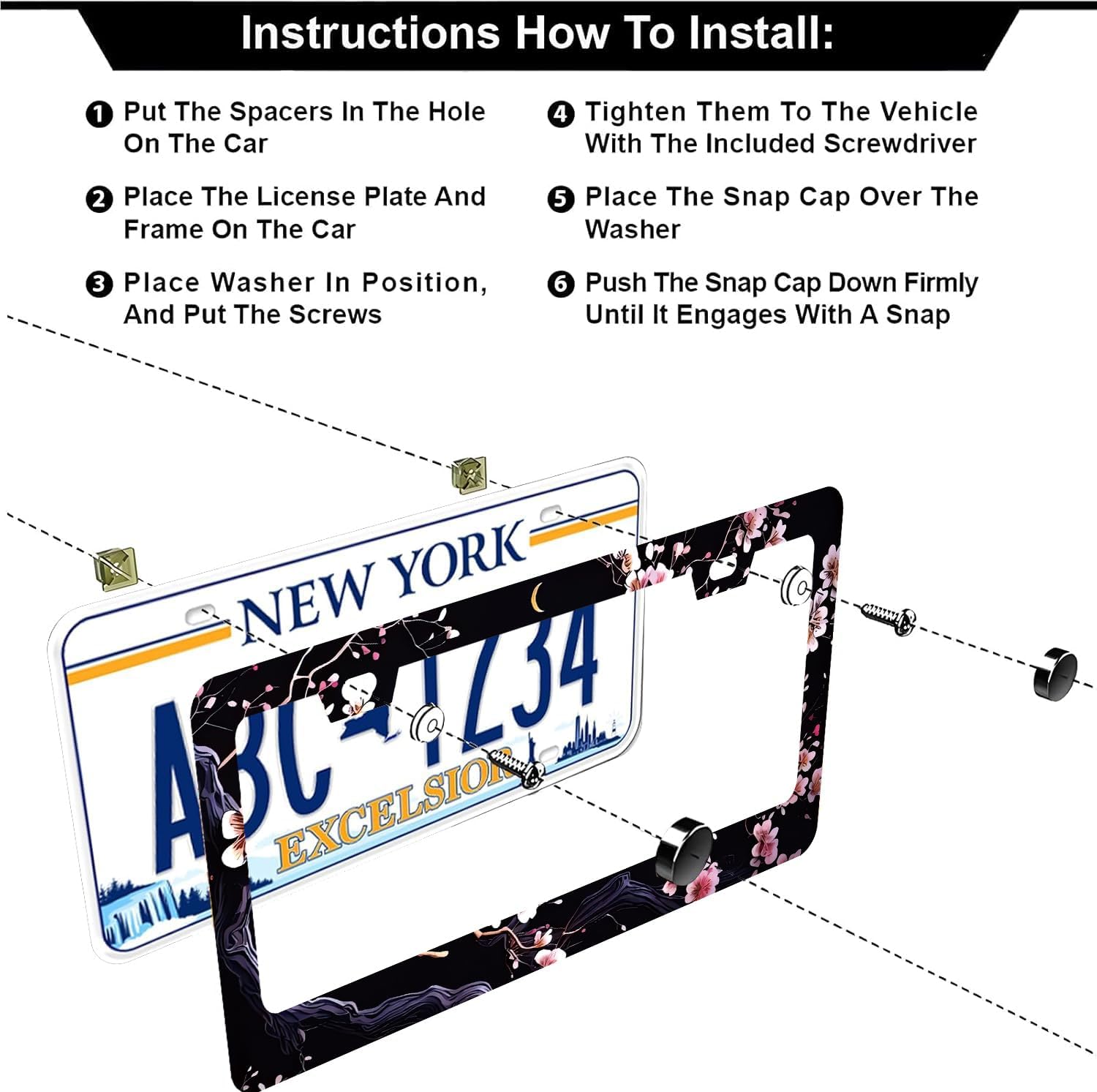 - 【Easy To Install】:Our license plate frame all accessories needed are included 2 Pcs (4 Screw Caps, 4 Screws, 4 Washers).Quick and simple installation with easy to follow instructions.Easy to clean, just wipe with a damp cloth.2 Pcs set, front and back installation is more fun!