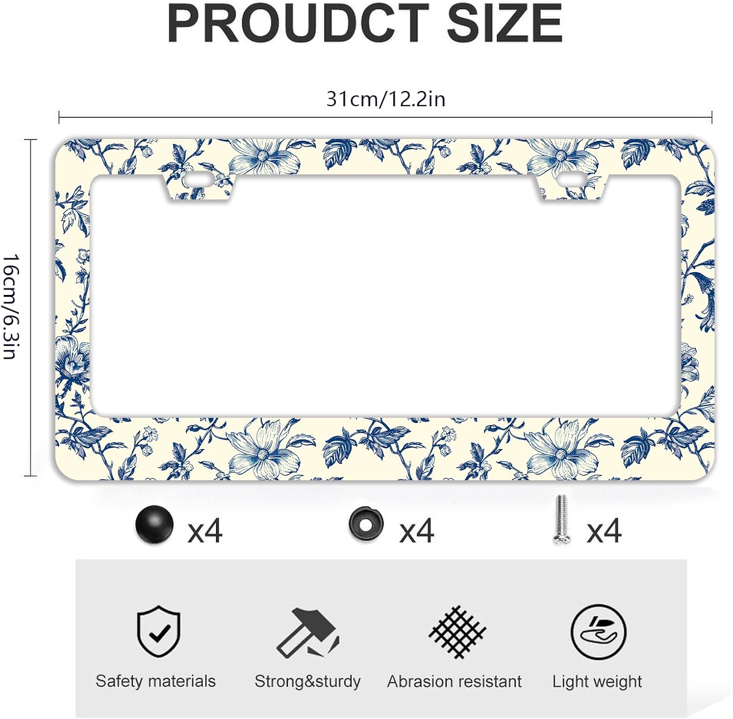 - 【Standard Frame Size】:License plate frame suitable for Us and Canadian standard vehicles size 6.3" x 12.2"(16cm x 31 cm) license plate.fits most trucks, cars,garages.