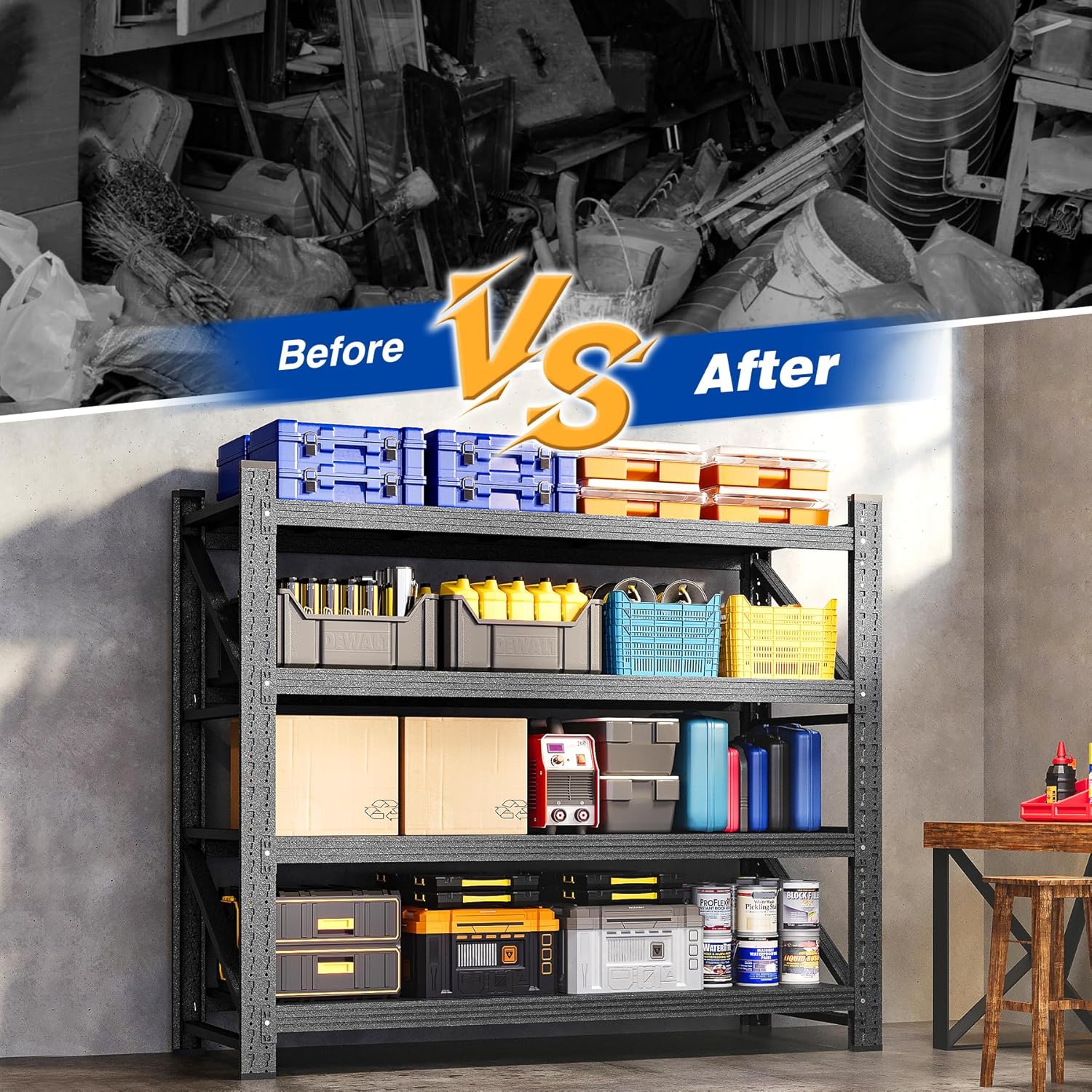 - Stronger stability: The heavy-duty garage Shelving is handled firmly on the sides. The diagonal of each heavy-duty shelf adds thickened reinforcement ribs to prevent loosening of the shelves, increasing overall stability, and storing heavy-duty tools and boxes is more stable and firm.