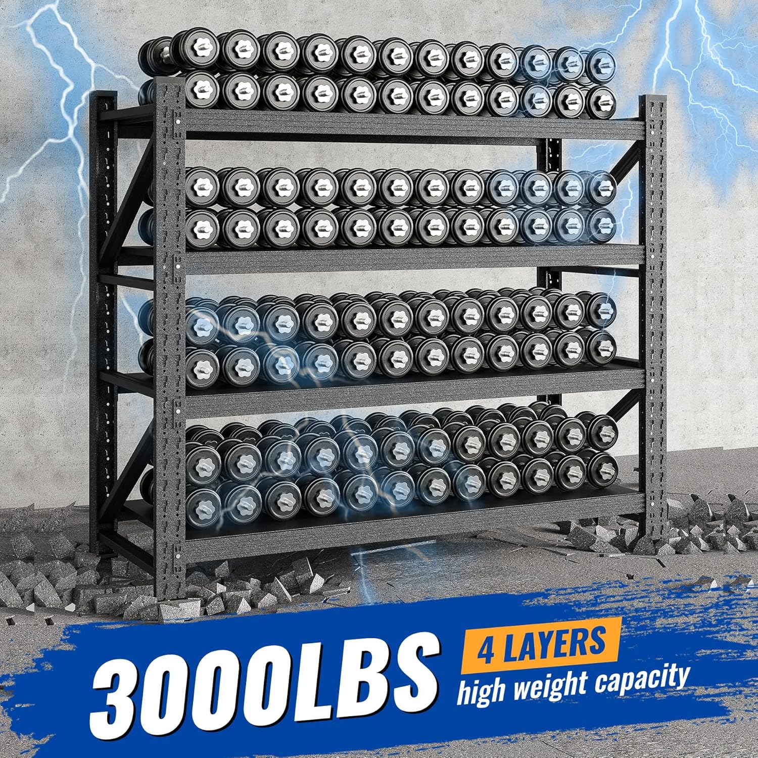 - Excellent load-bearing: Heavy-duty shelves use high-quality steel, thickened process, and scratch-resistant surface. The shelves can bear about 3,000 pounds as a whole, which can not only meet the storage of small items, but also store some heavy machinery and industrial materials.