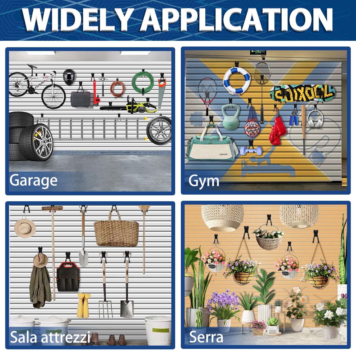 - Multi-Functional Utility Hook: The slat wall hooks set can be given as an exciting gift to any storage lover or organizer in holiday or daily life. Our versatile slate wall hooks and hangers are perfectly suited for various locations like garages, hardware stores, home improvement stores, and retail stores. They provide an excellent solution for organizing and displaying items such as garden tools, household cleaning supplies, painting supplies, extension cords, and more