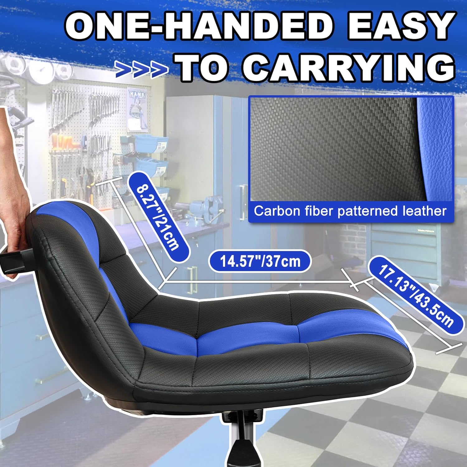 - Heavy Duty Garage Mechanic Stool: The Rolling Mechanic Stool is constructed with a robust angle steel frame, ensuring durability and reliability. Ideal for use in garages, workshops, and other demanding work environments.