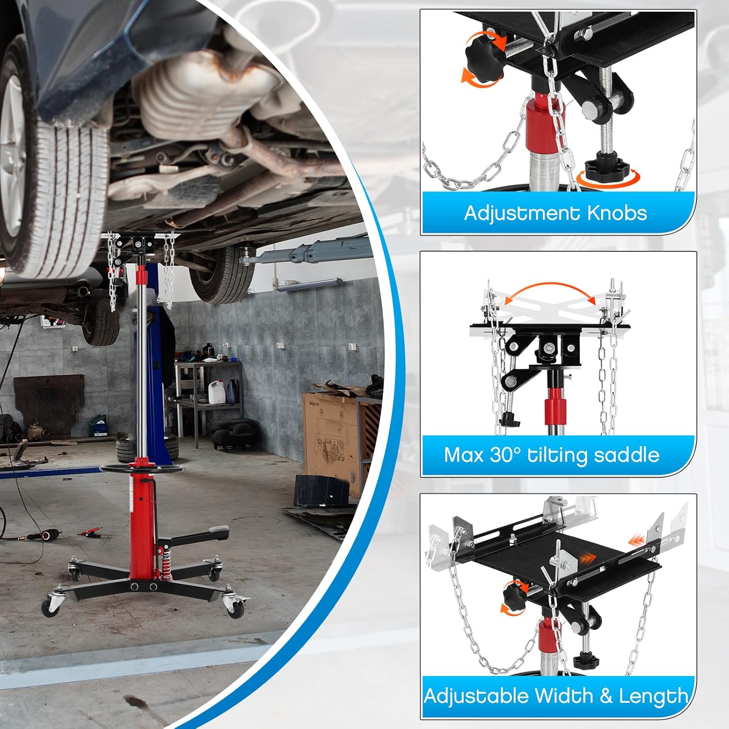 - Durable and Stable Design: Made from premium quality steel, this transmission jack features a sturdy construction that resists wear and tear. The heavy-duty design enhances its durability while providing stability during lifts, making it a reliable choice for all your automotive needs.