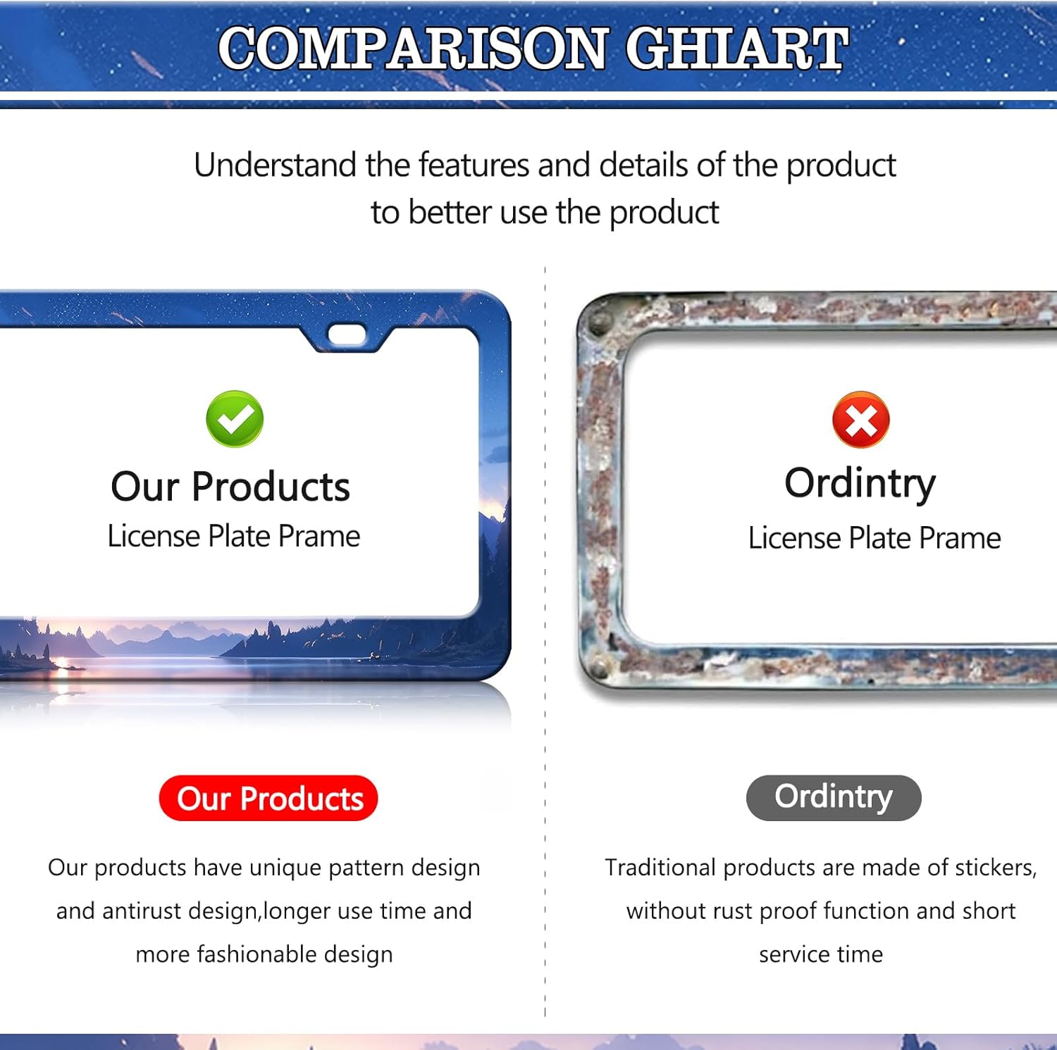 - No Fear Of Wind And Rain: It can be used with confidence in any bad weather conditions, will not be damaged and rusted, protect our vehicle license plates, and perfectly decorate your car