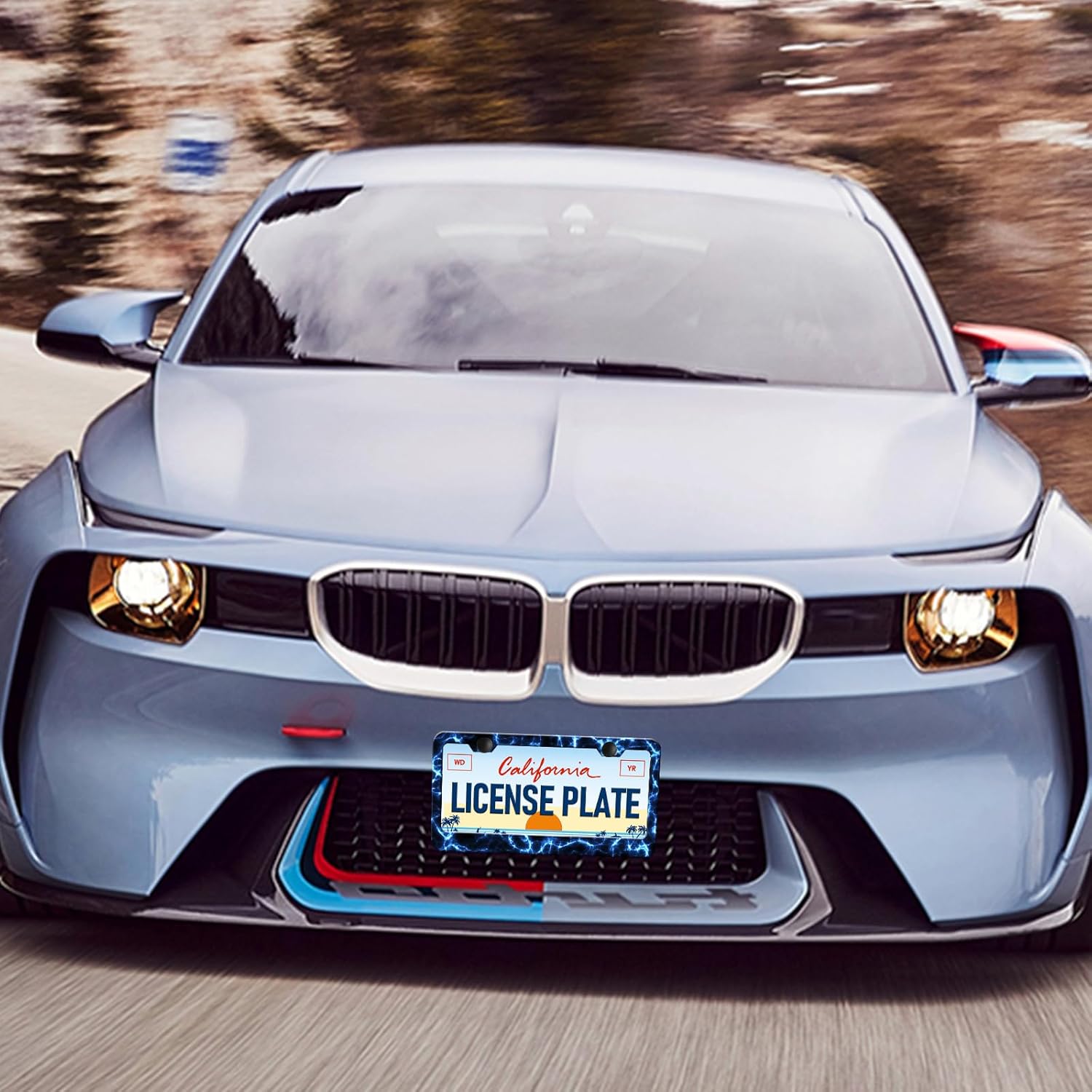 Blue Lightning License Plate Frames - 2 Pack Cool Thunder Stainless Steel License Plate Holder,Rust-Proof Waterproof Car Decorative Tag Frame with Screws Fasteners Caps
