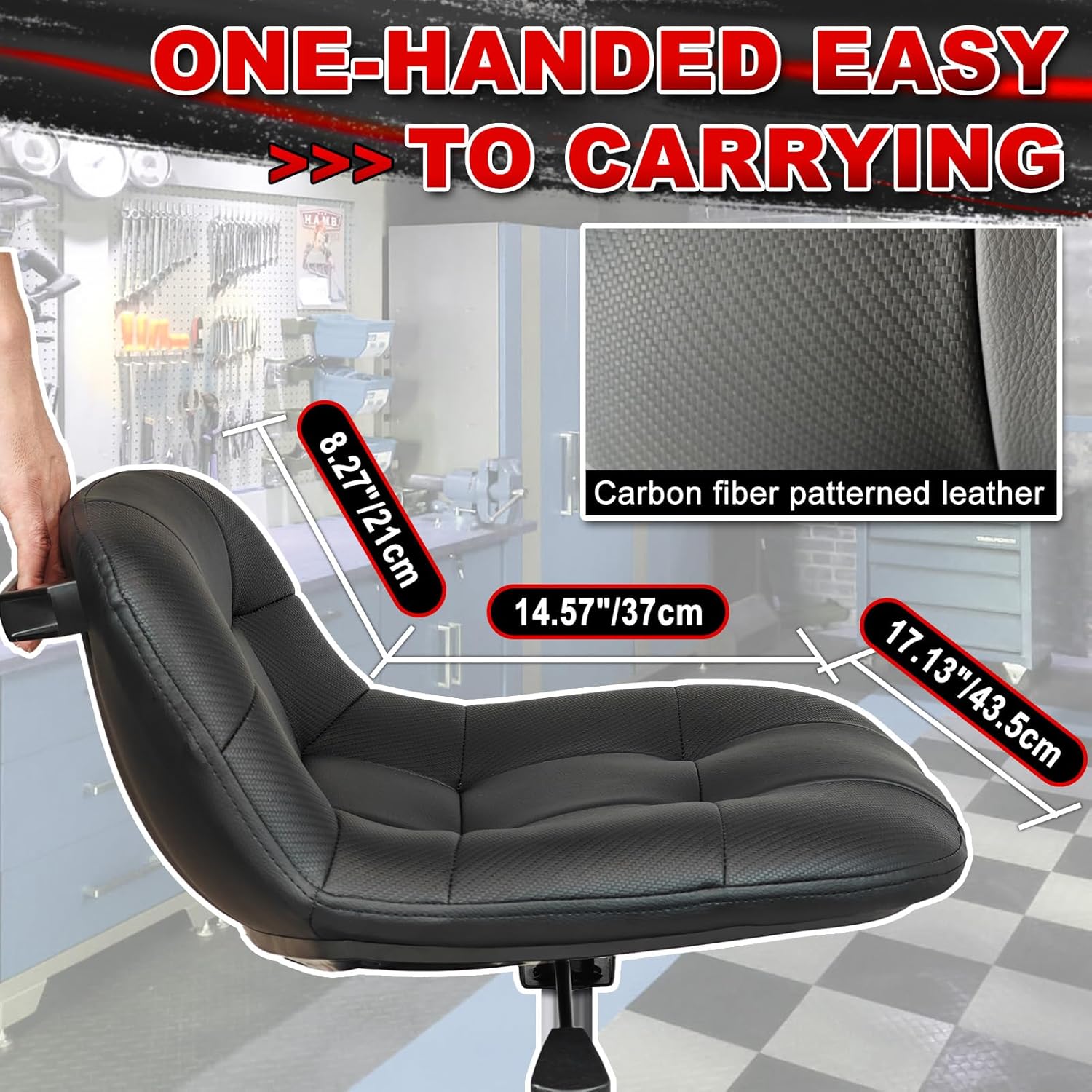 - Heavy Duty Garage Mechanic Stool: The Rolling Mechanic Stool is constructed with a robust angle steel frame, ensuring durability and reliability. Ideal for use in garages, workshops, and other demanding work environments