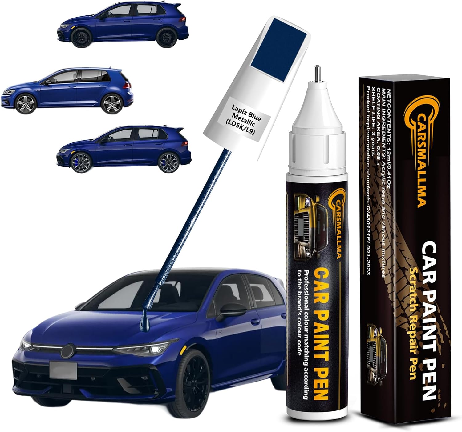 - Exact Color Match: Carsmallma car touch up paint(LD5K/L9 Lapiz Blue Metallic) is expertly formulated for Volkswagen vehicles, including Golf/Polo/Golf R/Tiguan and more. The automotive paint is meticulously crafted and rigorous testing to match the original factory finish, making scratches, chips and peeling paint hardly noticeable. Whether on bumpers or body surface, it delivers a perfect finish