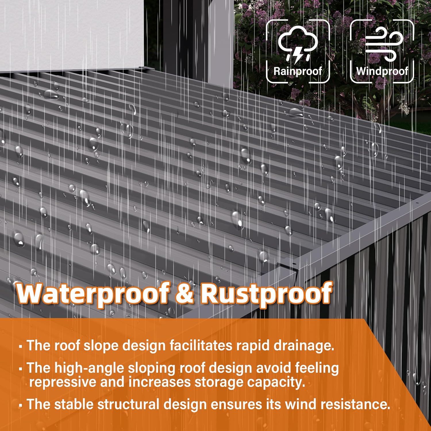 - Weatherproof & Durable Construction: Built with a sloped roof to shed rain and snow, plus sturdy metal panels that resist rust and withstand harsh weather for long-lasting use.