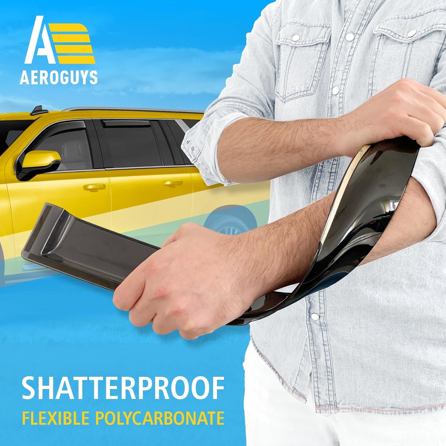 - Incredibly Durable AEROGUYS Auto Window Deflectors – They are made with strong and tough polycarbonate which is clear and scratch-resistant. They also provide UV protection making your ride more comfortable under all weather conditions.