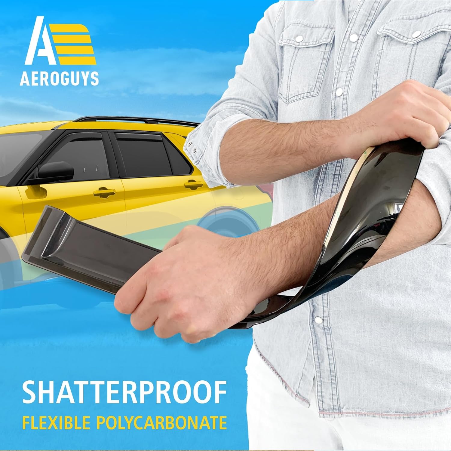 - Incredibly Durable AEROGUYS Auto Window Deflectors – They are made with strong and tough polycarbonate which is clear and scratch-resistant. They also provide UV protection making your ride more comfortable under all weather conditions.
