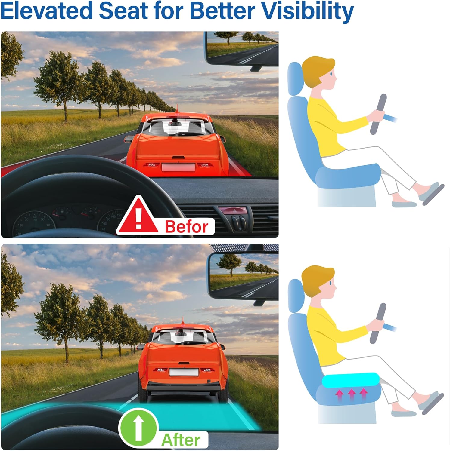 - Upgrade Car Booster Seat for Short Drivers - This car seat cushions for short people adds 4.5 inches of height and support, improving driving visibility, offering comfort and safety while driving