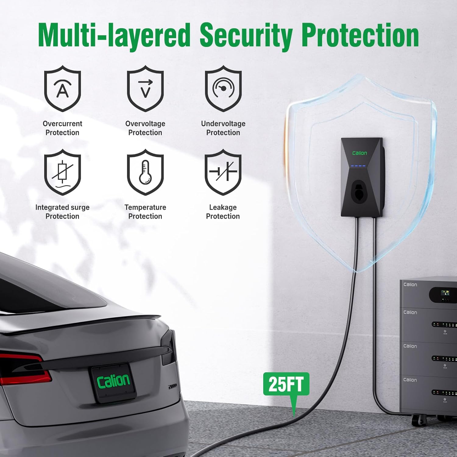 Calion Level 2 EV Charger-EV Wall-Mount Charger with 25FT Cable-Electric Vehicle Charging Station for J1772 EVs,50Amp,240V WiFi Electric Vehicle Charging Station,Hardwired for Electric Car