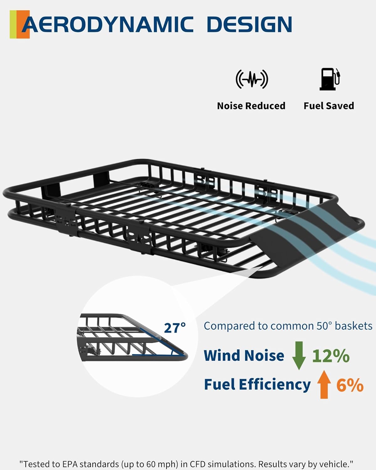 - 【BUILT TO LAST】The GarveeLife Universal Roof Rack Basket integrates powder-coated steel and electrophoretic technology to resist rust, corrosion, and extreme weather. Engineered for heavy-duty performance, it safeguards cargo during cross-country trips, camping, or long-term outdoor storage—built tough to outlast every adventure