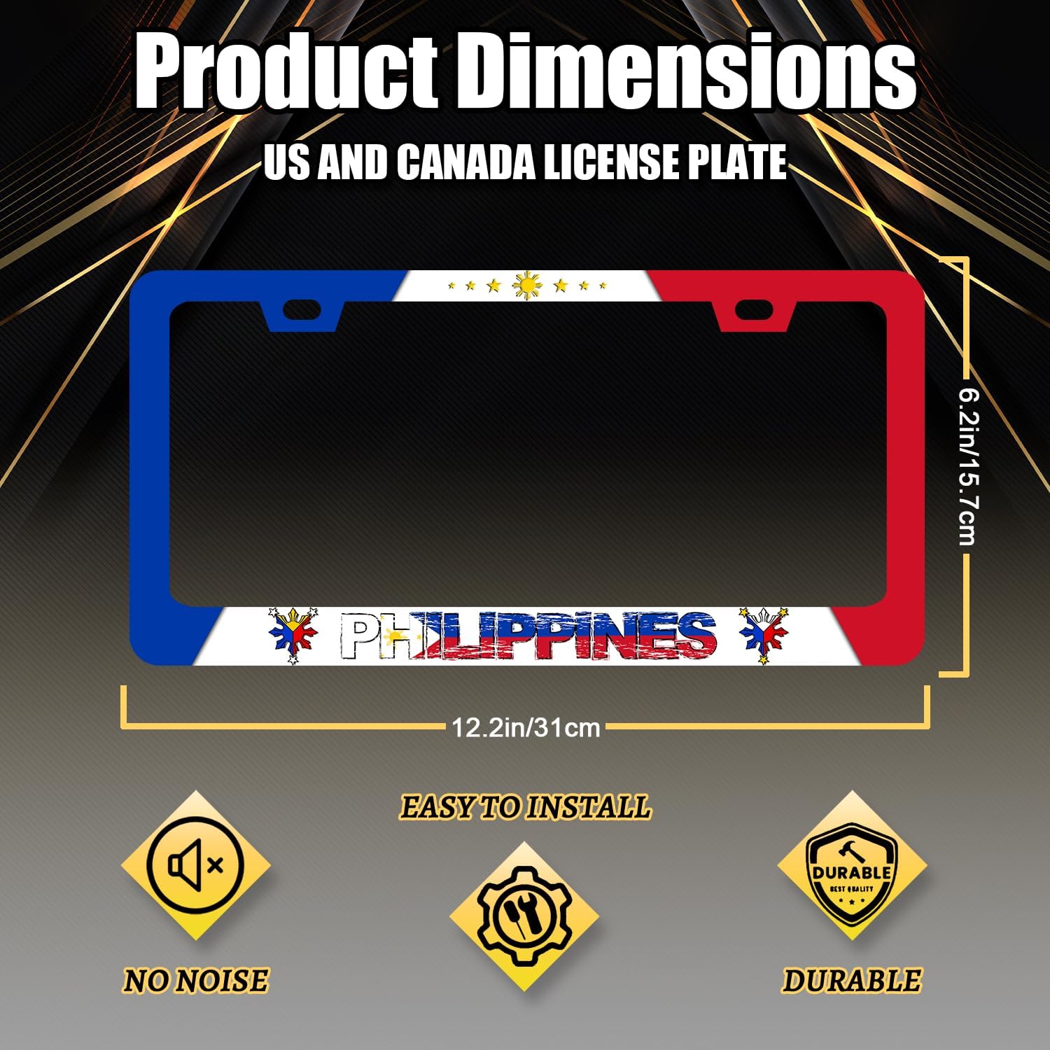- Size: 12.2" x 6.2" , it fits all standard size US vehicle license plates.With compatibility, the stylish design frame fits on your car license plate.