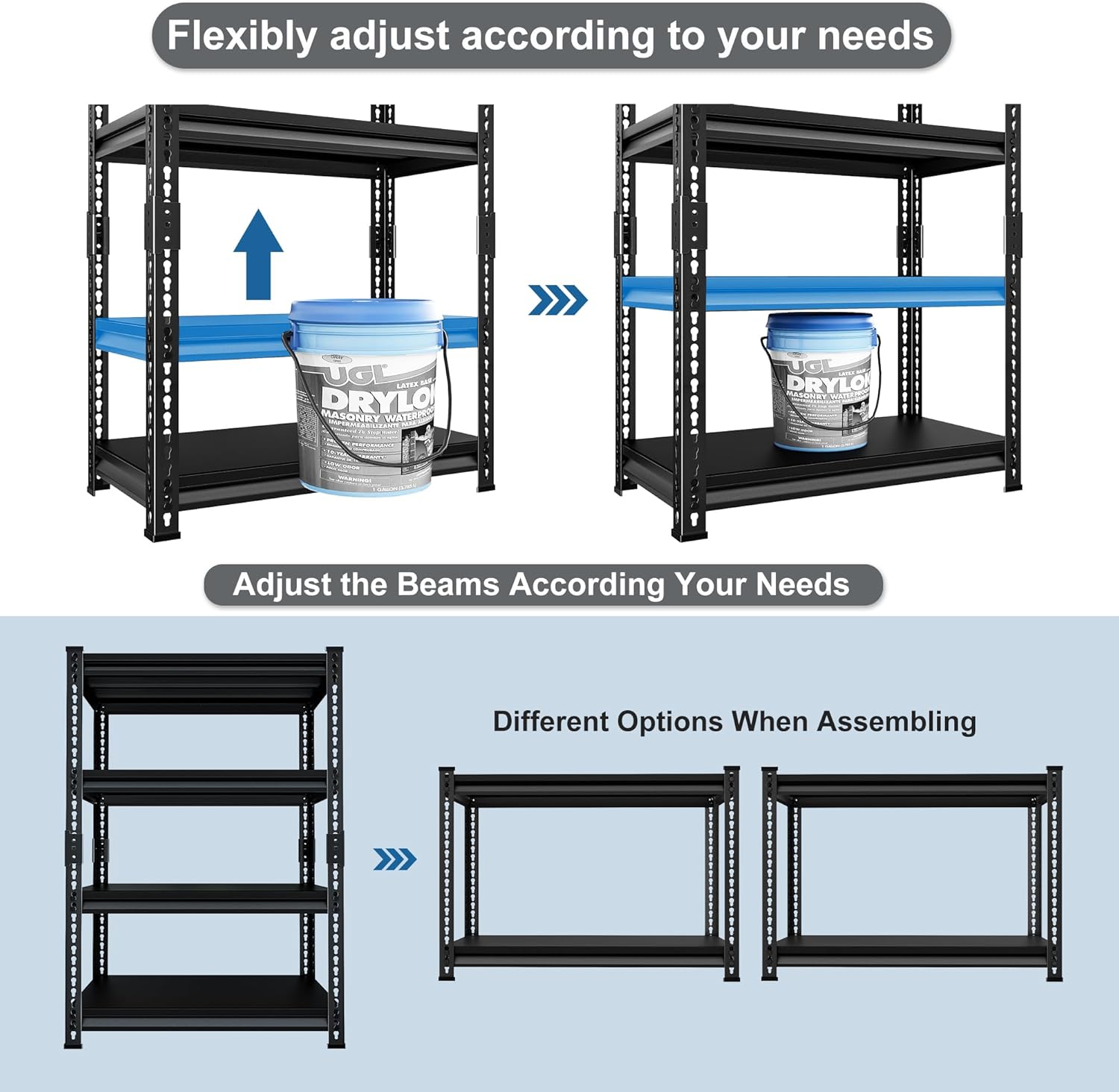 40" W Garage Shelving Heavy Duty,1800LBS Loads Metal Shelving Units and Storage,4-Tier Garage Storage Shelves Heavy Duty, Industrial Utility Shelves,40”W x 16”D x 72”H(Black)
