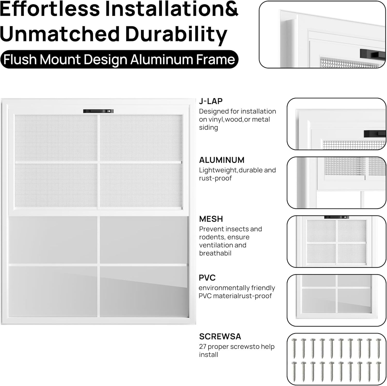 - Easy Installation: Comes with pre-drilled holes and included mounting hardware for a hassle-free setup. Fits most standard shed wall openings—ideal for DIYers and professionals alike.