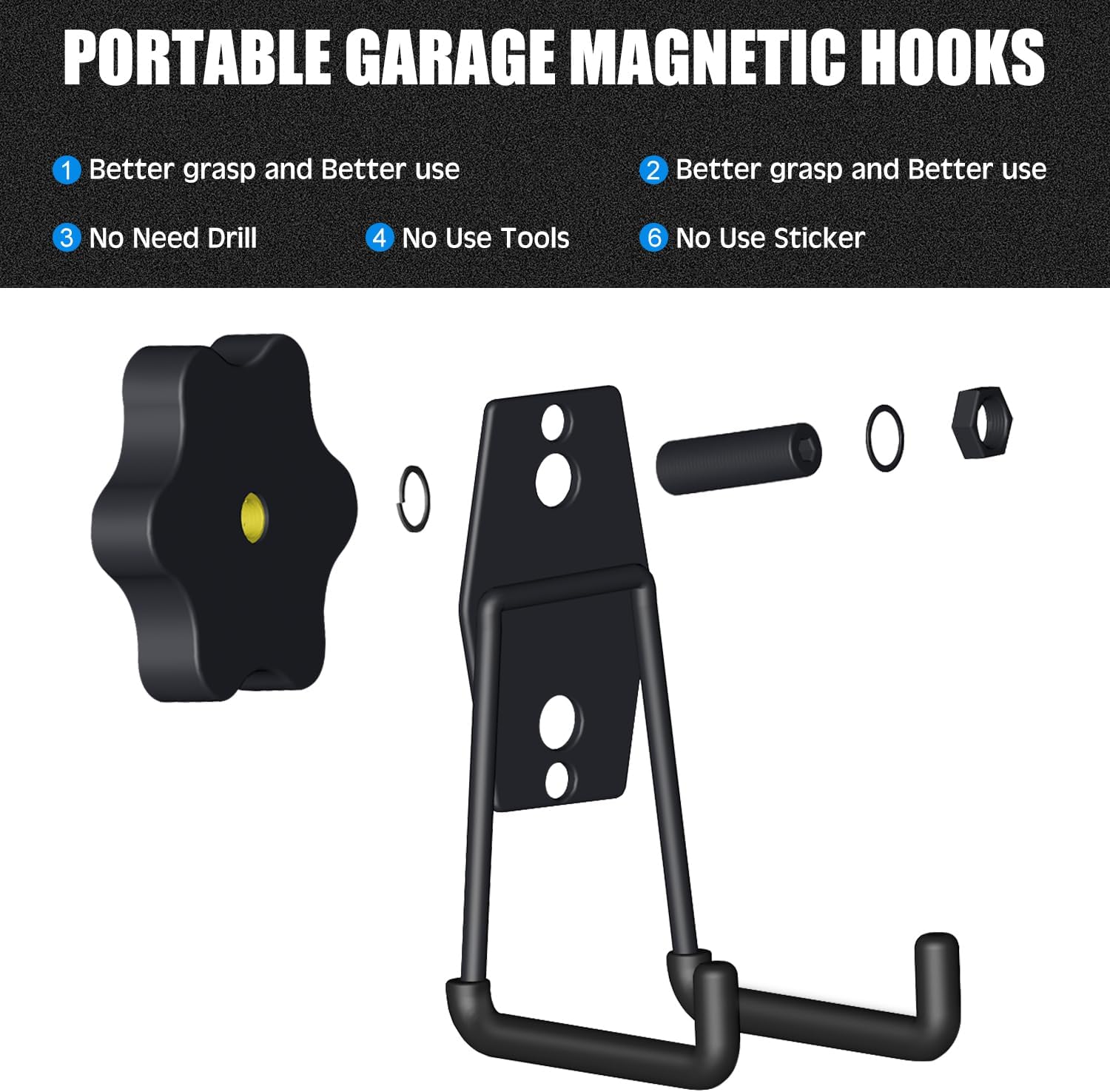- MULTI-PURPOSE MAGNET HOOK: The strong heavy duty neodyium magnet hook can create effective storage space for your garage, warehouse, kitchen, and accommodate various tools and equipment. Such as power tools, garden tools, hoses, skates, gym bags, ropes and other tools.