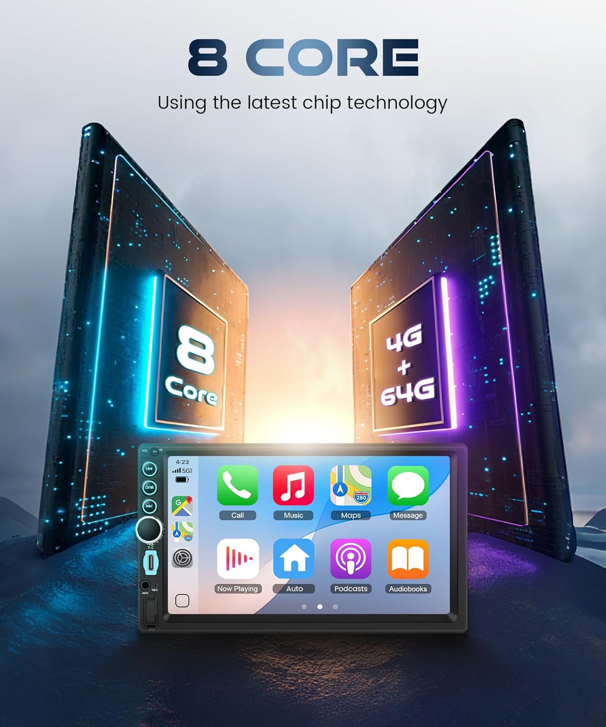 - [Wireless CarPlay & Android Auto & Mirror Link]: Seamlessly connect your iPhone or Android device wirelessly via CarPlay or Android Auto, allowing access to navigation, music, calls, and messages directly on the 7-inch touchscreen. Mirror Link support provides added flexibility for screen sharing and app mirroring.