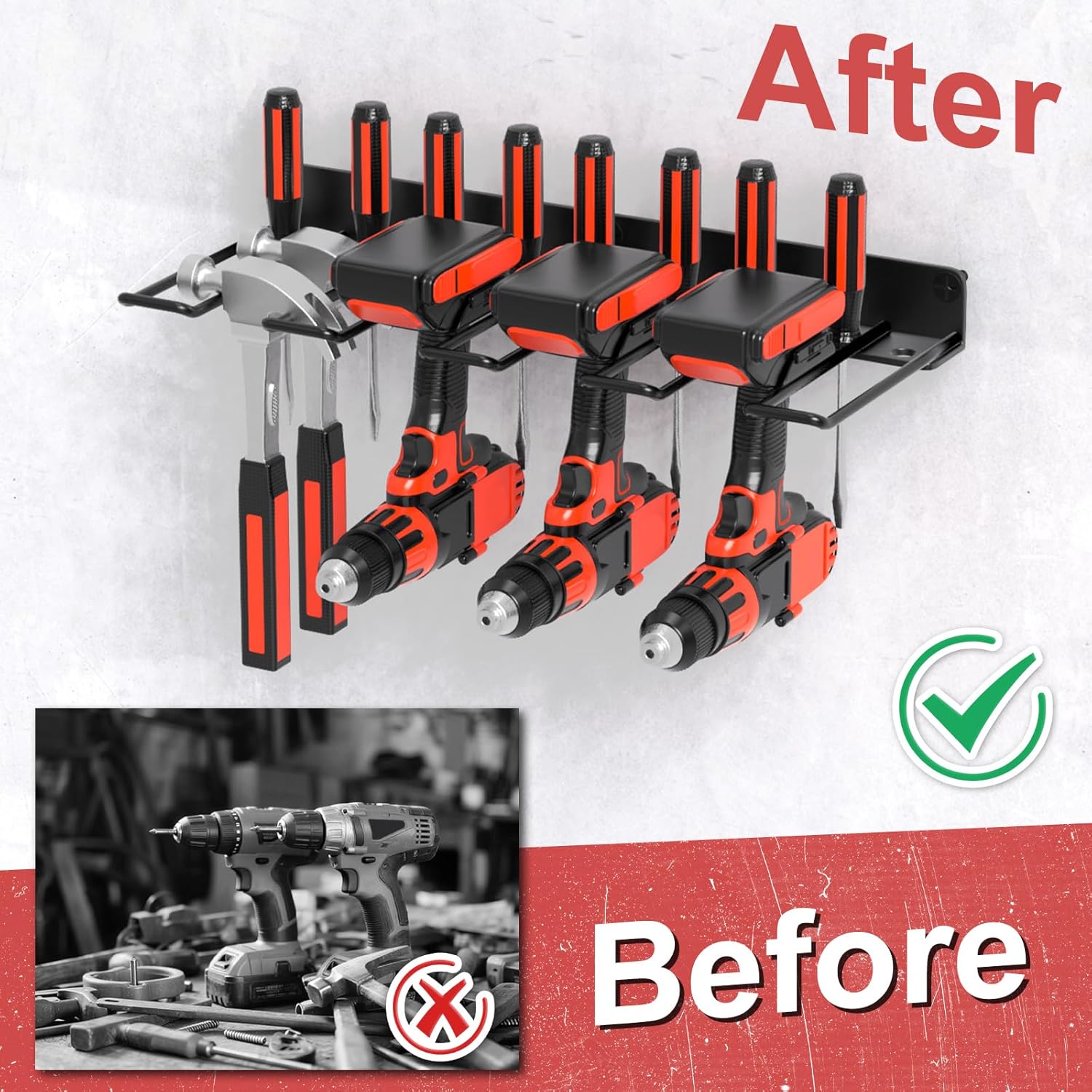 - Power Tool Organizer Wall Mount: This multifunctional drill holder rack transforms spare space into a versatile power tool storage organizer that keeps your usual tools organized, with extra slots allowing you to organize more screwdrivers, you're sure to get a satisfactory solution.