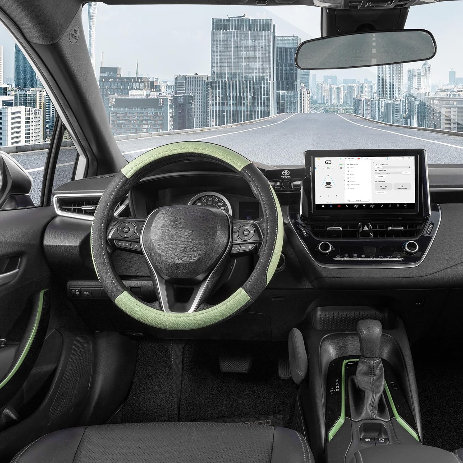 SEG Direct Steering Wheel Cover for Car, Standard Size 14.5-15 inch, Auto Interior Accessories, Black and Pastel Green