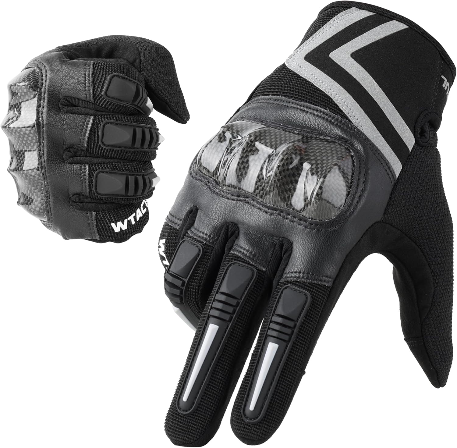 - Protective Carbon Fiber Hard Knuckle Motorcycle Gloves: Features a lightweight carbon fiber knuckle shell for impact protection, with color-matched rubber strips on fingers for added safety and style. Available in three versatile colors: classic all-black, sporty black/white, and high-visibility fluorescent green for enhanced safety.
