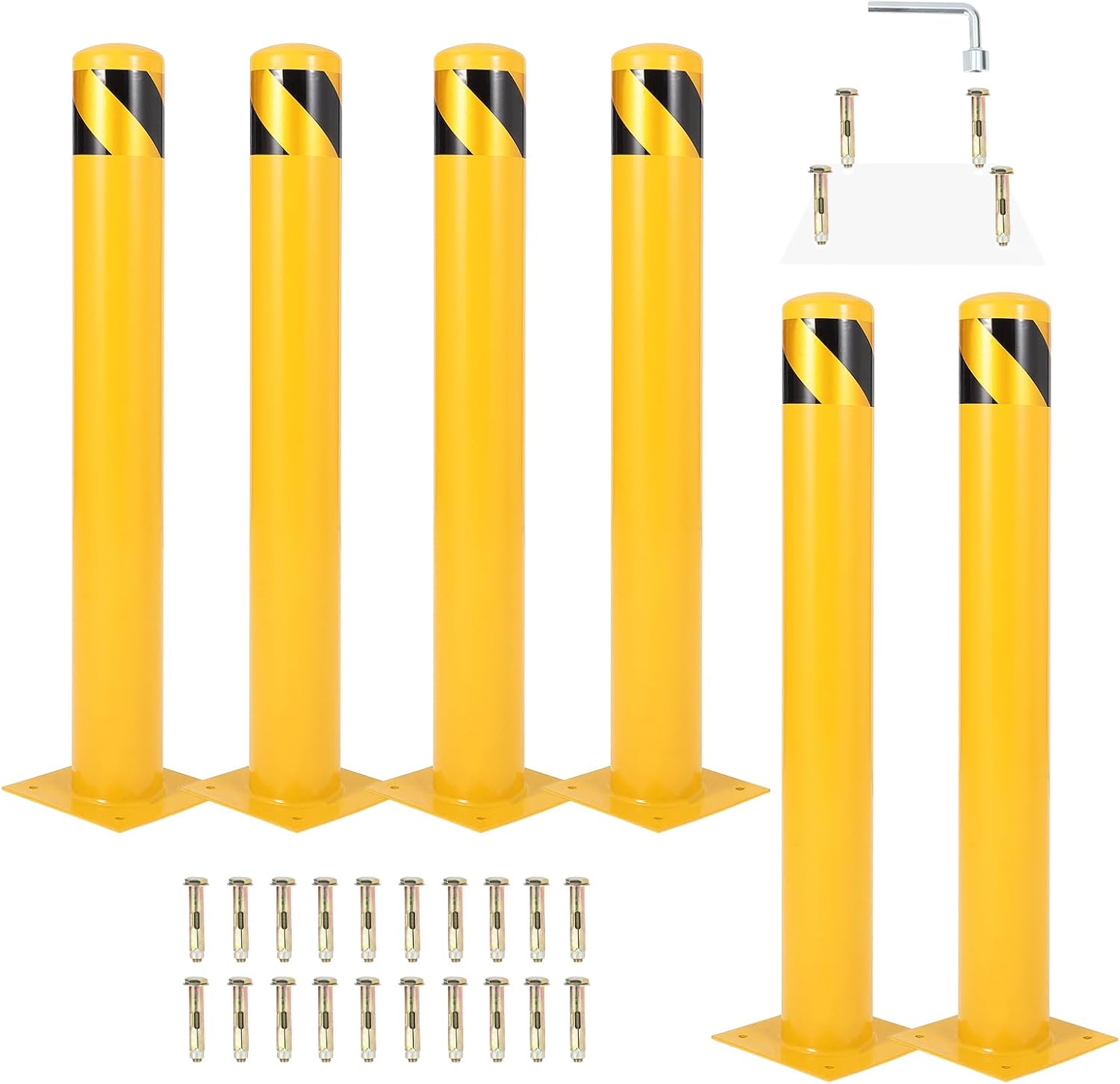4.5x48 Inch Safety Bollard Post - Yellow Steel Bollard with Anchor Bolts (2-Pack) for Parking Lots, Walkways & Traffic Areas