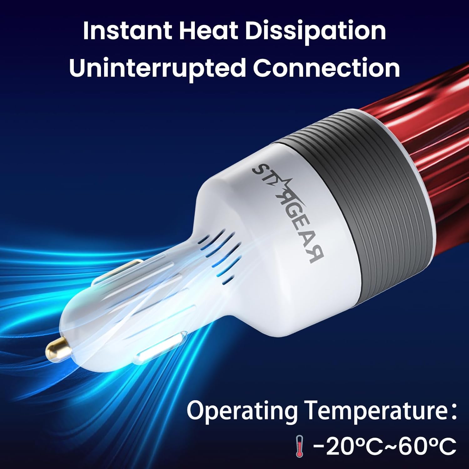 - [ Heat Dissipation & Gold-Plated Endurance ] Brass-plated pure copper cores deliver oxidation-free conductivity in your 12V car charger or cigarette lighter adapter. The car cigarette lighter plug locking design prevents disconnection in high vibration zones. Dual heat dissipation sustains full 24V/60W output—perfect Starlink Mini car adapterand 12V to 24V booster for RV power converters or DC to DC chargers