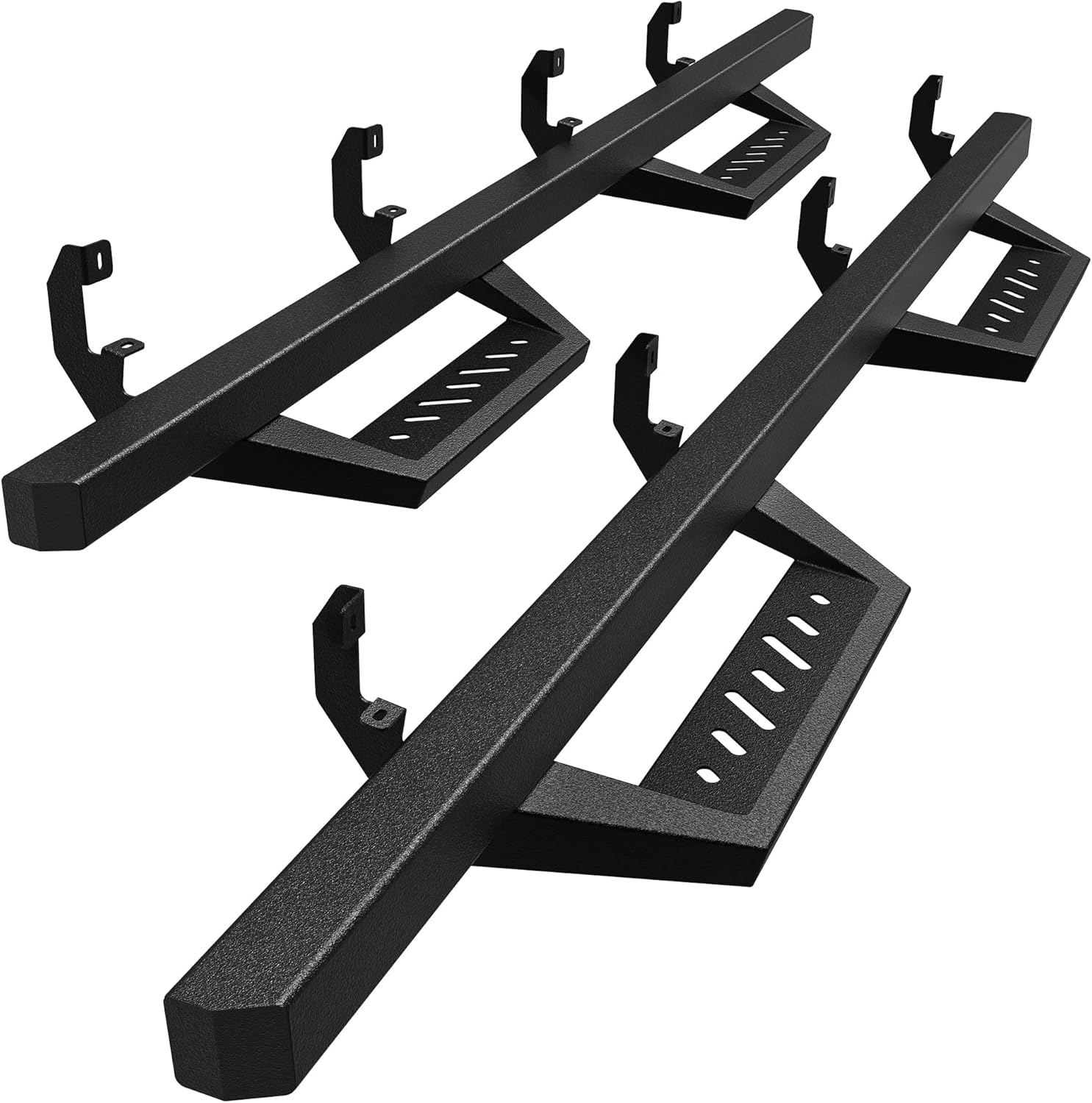 - Quick Bolt-on Installation: Includes driver and passenger side step bars, all necessary hardware, and brackets for a no-drill, easy mount; Install in under 20 minutes to upgrade your truck for camping, overlanding, or quick access to gear