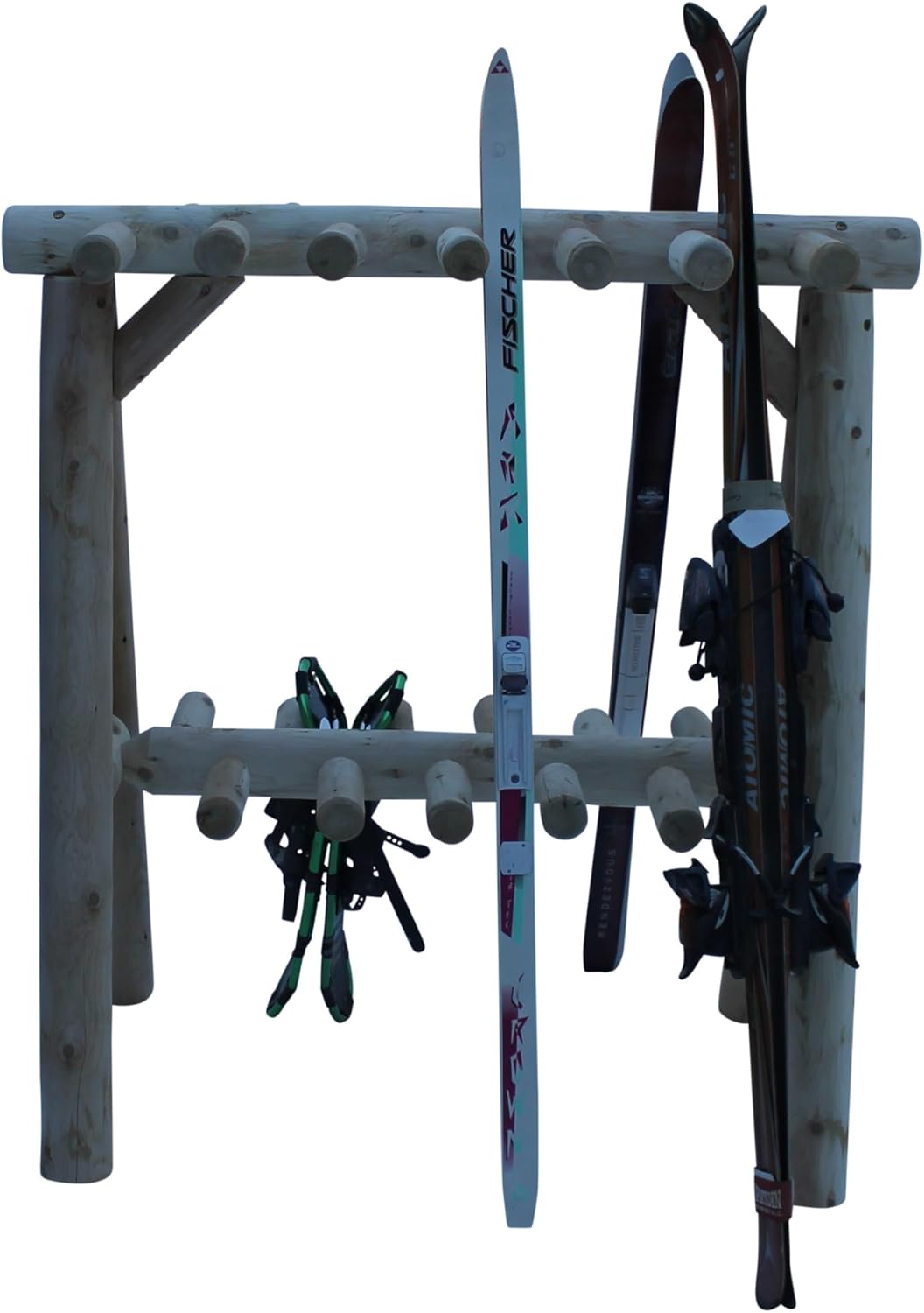 - 100% NORTHERN WHITE CEDAR CONSTRUCTION: Crafted from durable Northern White Cedar logs, this wood storage rack combines strength and rustic appeal. Use it unfinished to allow a silver-gray patina or stain it to match your existing garage storage setup. Whether it’s used as a ski rack for garage interiors or an outdoor snowboard storage rack, it offers a natural look and dependable performance season after season.