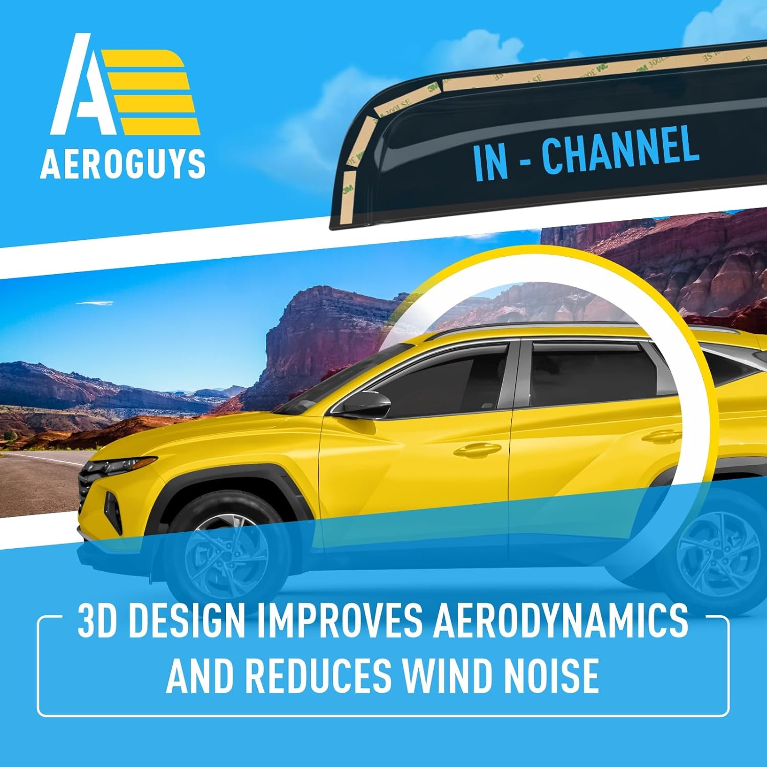 - No Tools Needed, Quick and Easy Assembly – These rain guards are very easy to fit. IN-CHANNEL INSTALLATION provides perfect fit for your car. Just slip it onto your car’s window and your job is done within minutes. There is no drilling or no tools required. Be sure that AEROGUYS window deflectors are water resistant, sun protective and will not bend, break or crack regardless of the weather conditions.