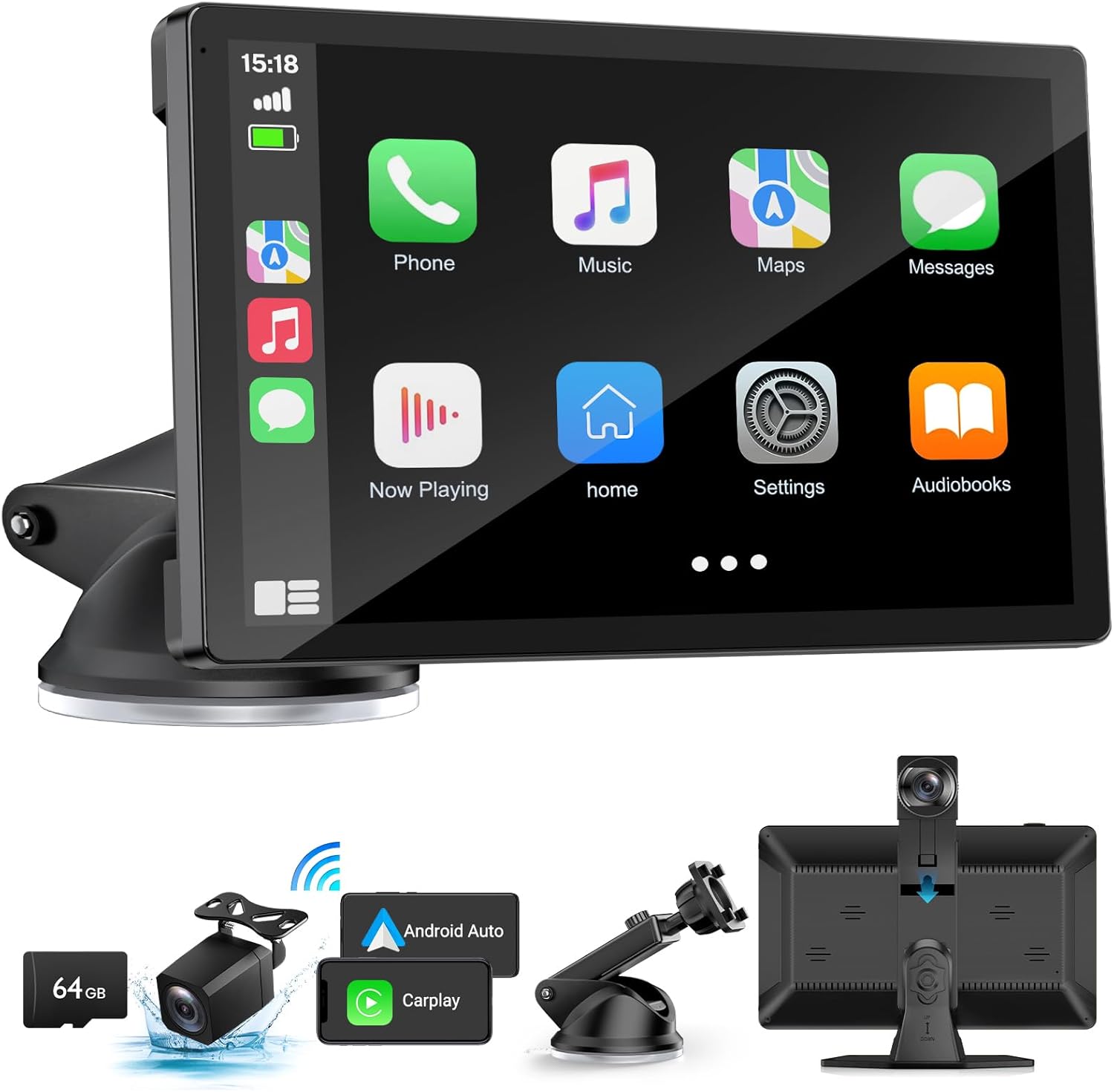 - Wireless Carplay and Android Auto: This plug-and-play 9-inch carplay screen for car supports both Android Android Auto and Carplay, so it's easy to connect and use whether you're an iOS or Android user. And your phone will automatically Wireless link to the carplay or Android Auto Via Bluetooth and WiFi after first time setup