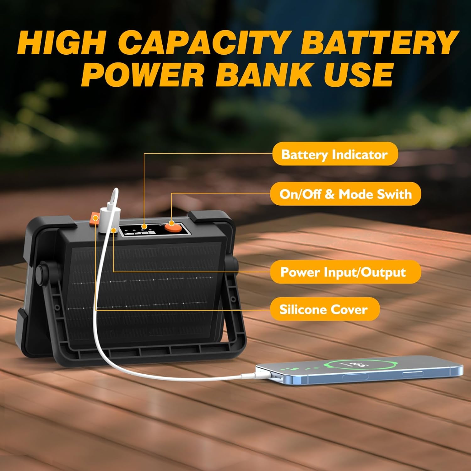 - Two Charging Ways & USB Power Output: Never run out of power when you need it most, And the 4-level power indicator (25%-50%-75%-100%) keeps you informed of remaining battery life. The 6,000mAh rechargeable battery charges fully in just 5-6 hours and lasts up to 12 hours on a single charge. Solar charging with 20% energy conversion efficiency - ideal for off-grid use. USB power bank function (5V/2A output) to charge phones, tools, or other devices in emergencies
