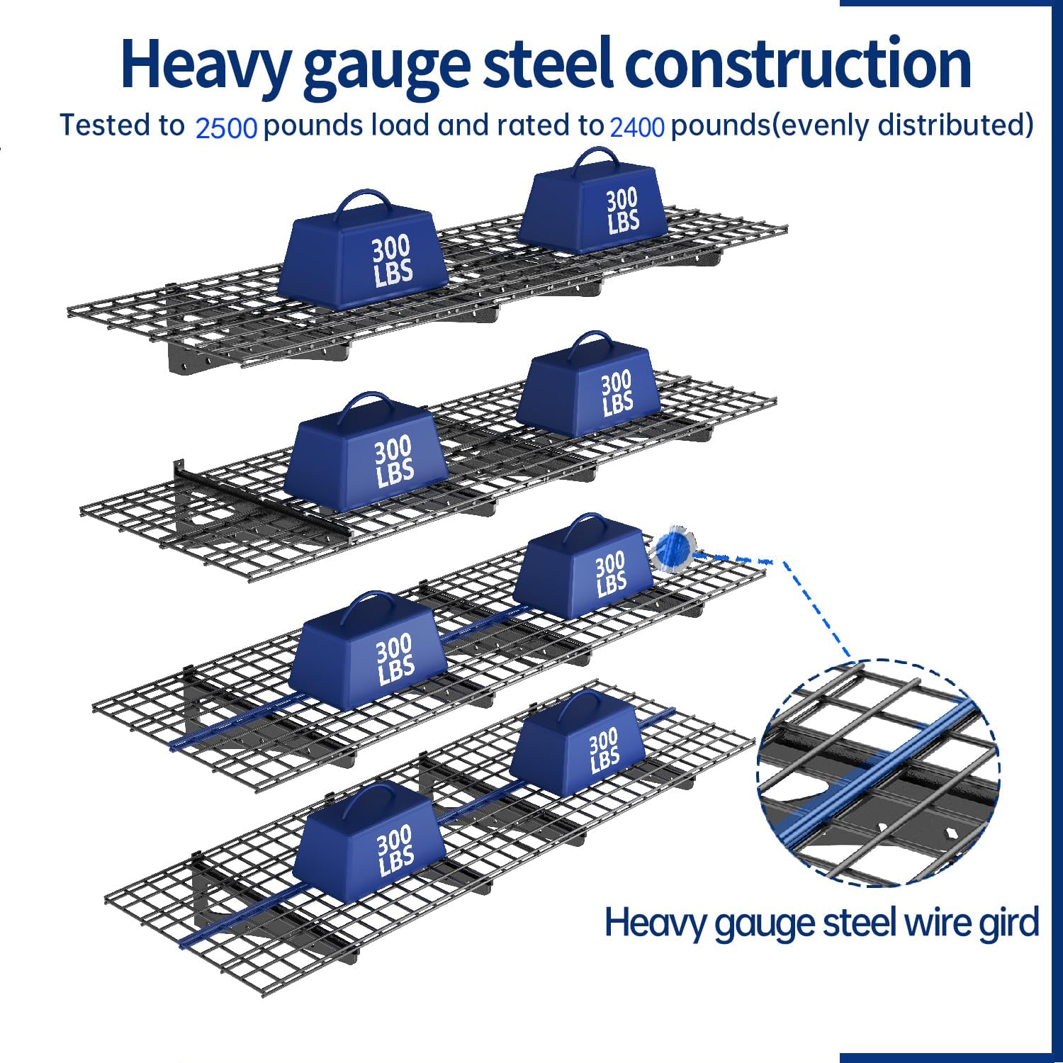 4Pack 2x6ft Garage Shelving Wall Mounted, 2400 Lbs Heavy Duty Garage Wall Shelving Storage Shelves for Basement, Laundry Room, Heavy Duty Floating Shelves Holds Up to(Black), 70.86" x 23.6"